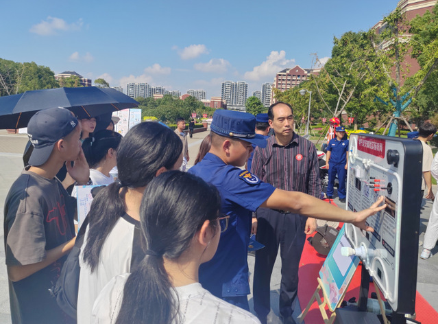 商学院党委书记刘爱香、党委副书记俞海燕、副院长尹卫华以及师生代表参与了启动仪式,仪式上开展了灭火器实操、烟雾逃生演练、消防救援演练及安全知识宣讲等一系列消防活动。我院师生积极参与活动,实操演练环节,学生亲自动手,使用灭火器灭火、穿戴救援服等,进一步增强了学生的体验感,有效提高了同学们的消防安全意识和自防自救能力,营造了浓厚的消防宣传氛围。