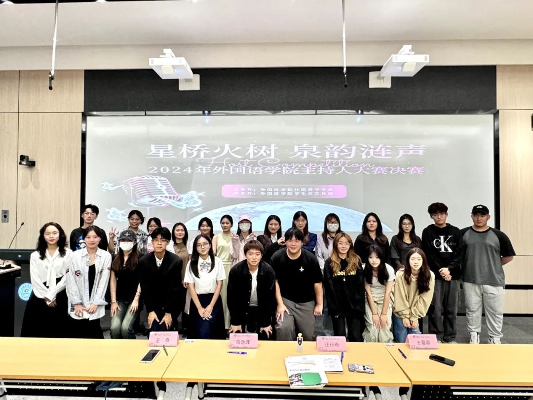 复赛于1016日晚在三教220举行。复赛现场,选手们自信从容,通过自我介绍、模拟主持和即兴评述等环节,充分展示了自己的主持风采。校主持团成员汪珏希同学对选手们的表现进行点评,她对每位同学的精彩表现提出赞扬,并指出了不足之处,同时对所有外国语学院的参赛选手们表示最衷心的祝贺。最终,德语B24-1班的刘瑜轩获得第一名;英语B24-1班的曾奕霏获得第二名;英语B24-3班的陈畅获得第三名。
