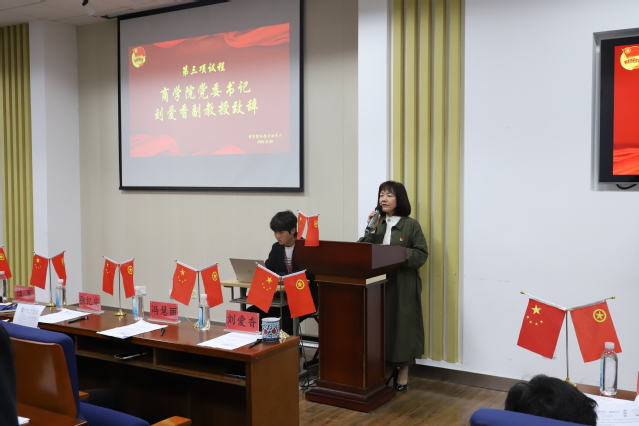首先,商学院党委书记刘爱香副教授发表致辞。刘书记在致辞中强调高校学生社团是落实立德树人根本任务、推进素质教育的重要载体,是高校学生根据成长成材需要,是结合自身兴趣特长,在学校、学院党委领导下开展活动的群众性学生团体。她希望各位指导老师和社团负责人不断提高政治素养,坚定正确的政治方向;严格遵守社团管理规定,充分发挥社团的育人功能;提高社团管理质量,打造社团文化品牌。她要求学院各社团在院党委和分团委的领导下,在社团管理中心骨干和各社团负责人的共同努力和积极配合下,时刻遵守社团建设管理规定,不越过任何一条红线,积极探寻促进社团发展的方法和路径,将社团向更有规范性与示范性的方向建设,为校园文化建设、为商学院学生社团的健康发展贡献更大力量。