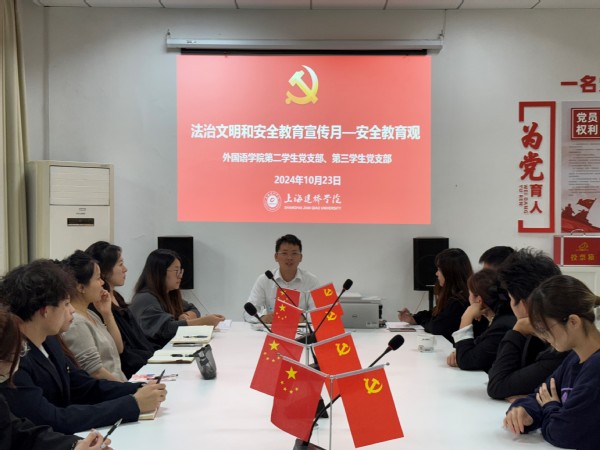 为了进一步推进校园法治建设与安全教育工作,营造更加和谐、安全的校园环境,增强学生党员及广大师生的安全意识,提高安全防范能力,外国语学院第二、三学生党支部在“法治和安全教育宣传月”联合开展“法治文明伴我行,人人都是安全员”主题党日活动。