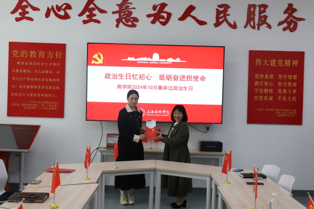近日,商学院党委举办了以“政治生日忆初心 砥砺前行担使命”为主题的党员集体过政治生日活动,出席此次活动的有10月份过“党员政治生日”的尚斌、王娟、陈传宝、林颖、郑帆、张纪安老师和学生党员张紫婷及商学院全体党委委员,活动由学院党委书记刘爱香主持。