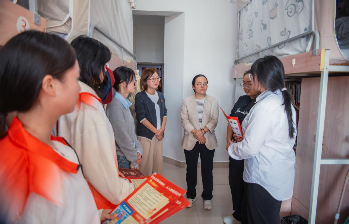 学院领导与党团志愿者深入学生社区,宣讲寝室安全纪律,包括寝室内禁止吸烟、禁止私拉电线、禁止使用违规电器、禁止燃放烟花爆竹和焚烧物品、禁止打架赌博酗酒以及禁止饲养宠物等行为。学院领导在学生社区向同学们强调了寝室安全的重要性,倾听了同学们的声音,解答了同学们关于寝室安全的疑问,进一步增强了同学们的自我保护意识。