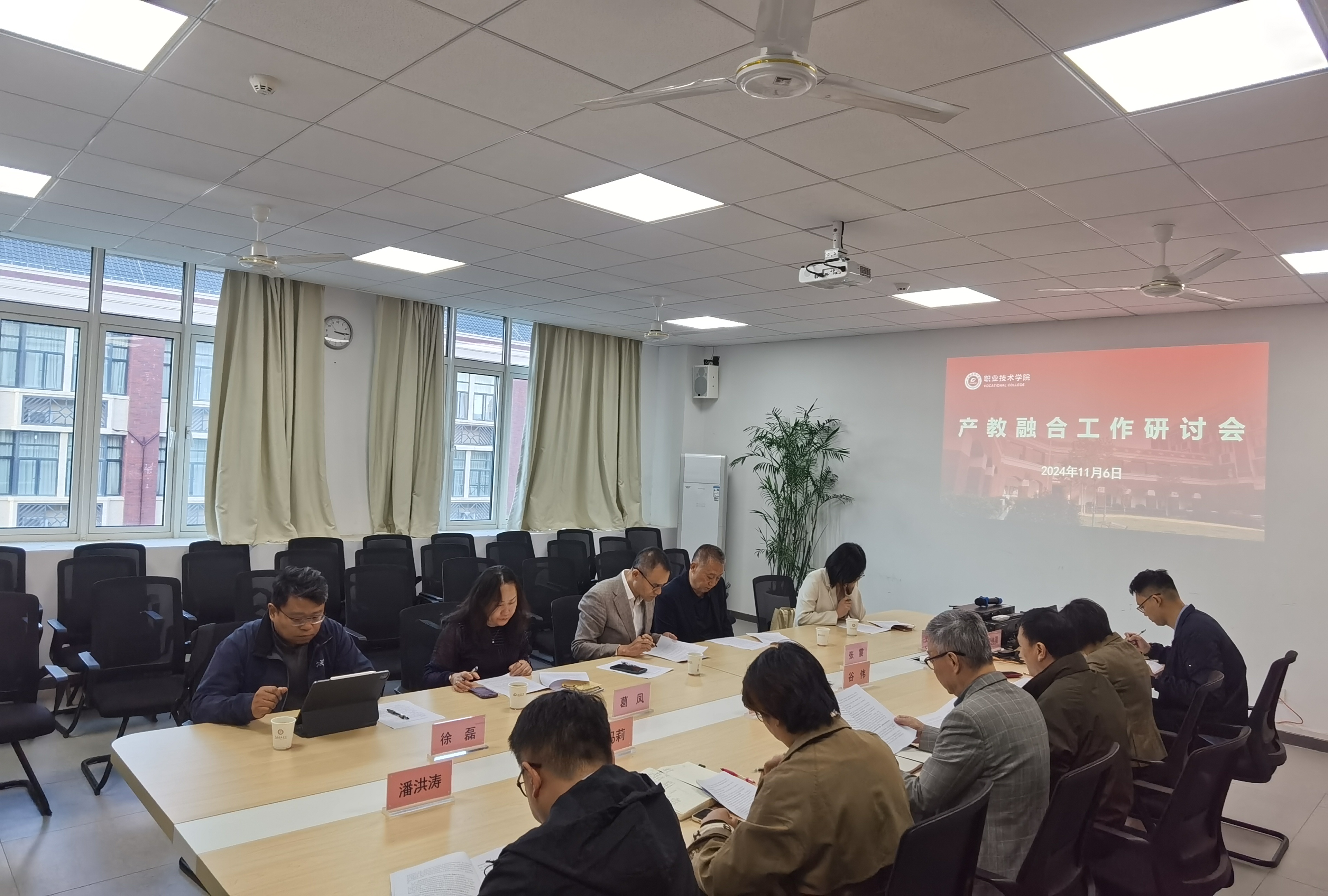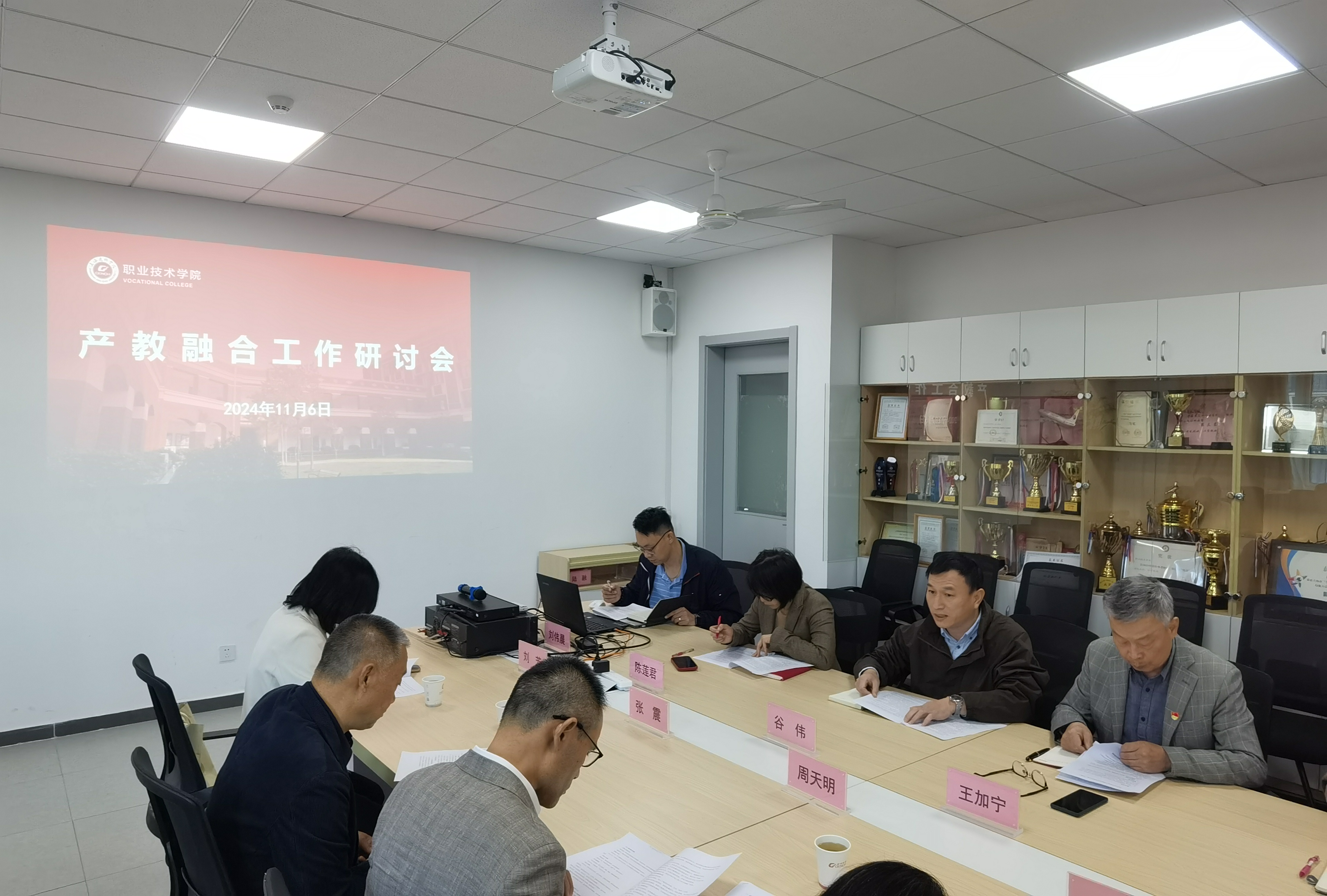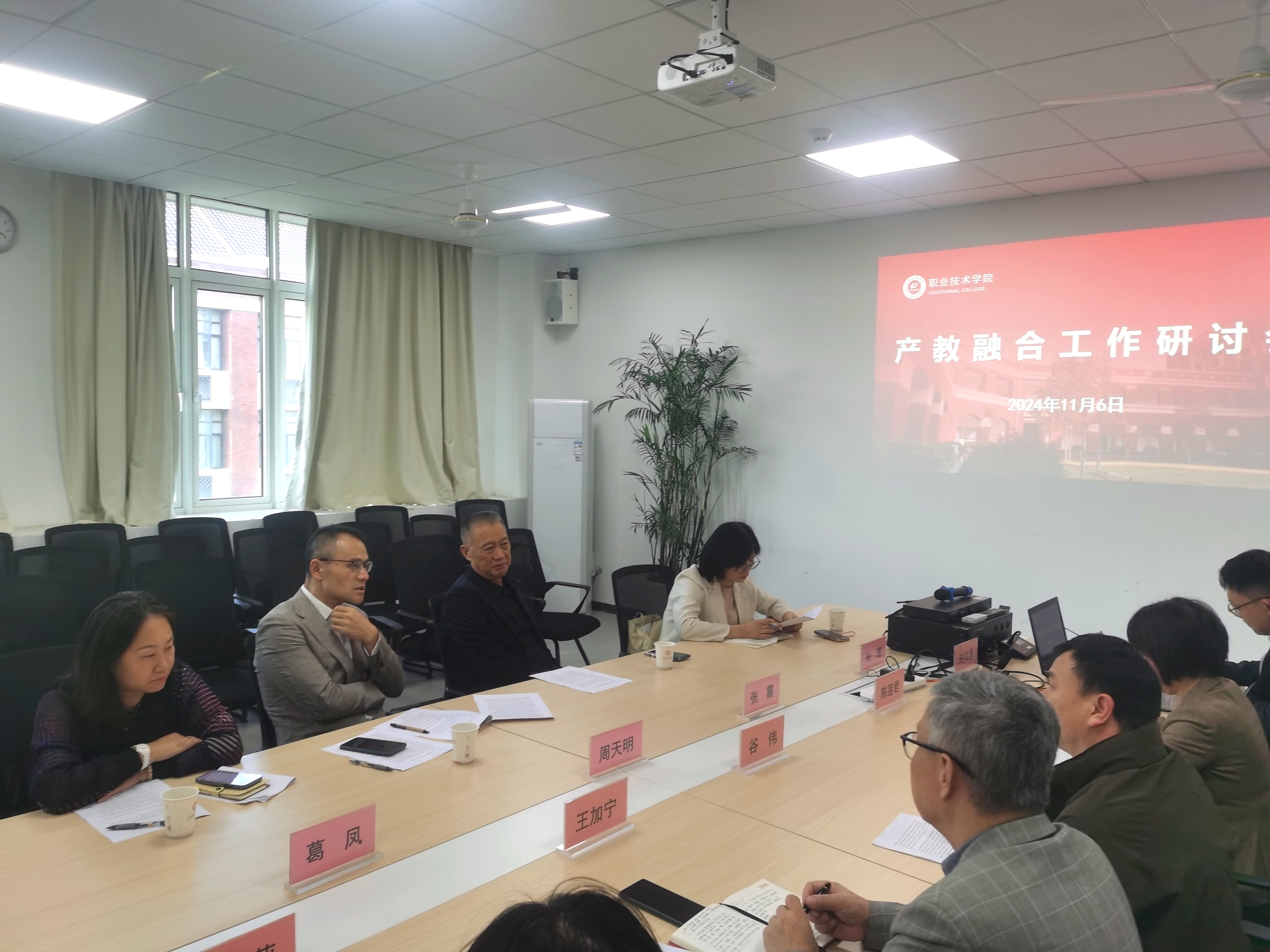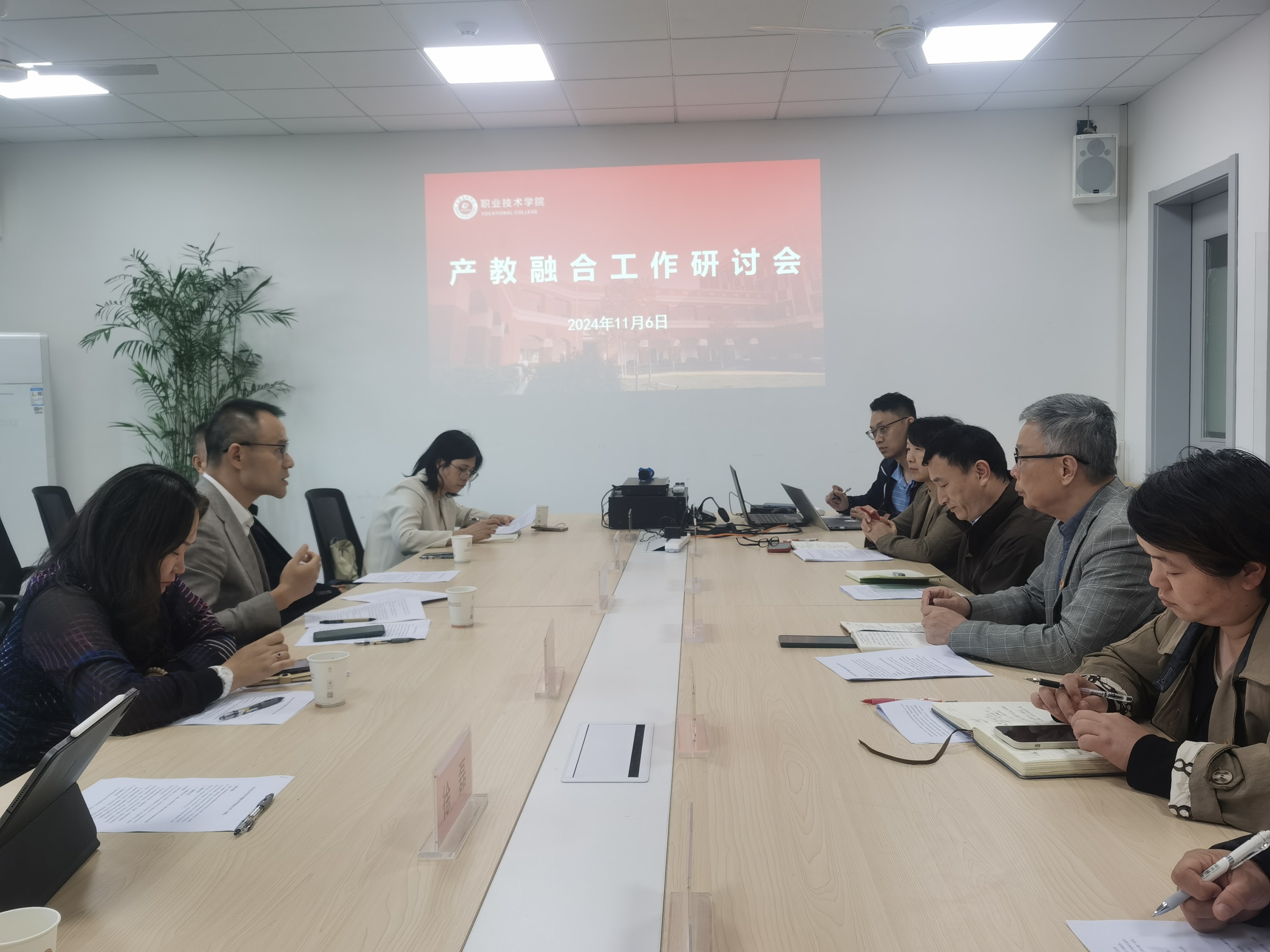 11月6日下午,集团总裁周天明率队,副校长张震、继续教育学院院长葛凤、产教融合促进中心副主任徐磊等一行5人莅临职业技术学院调研指导工作。职业技术学院院长谷伟,书记王加宁,副院长陈莲君,副书记马冯莉以及学院产教融合工作相关人员出席会议。