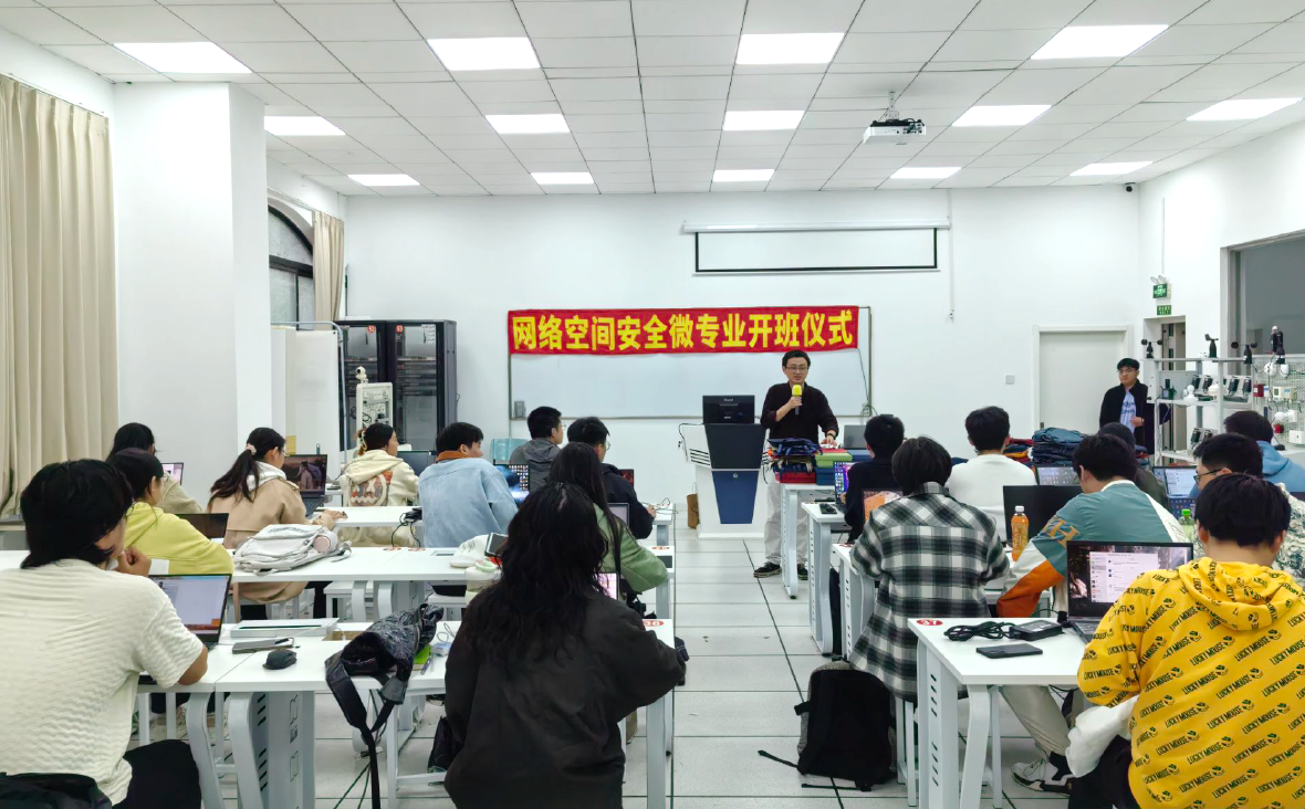 2024年11月10日下午,网络空间安全微专业(第一期)正式开班,此次面向信息技术学院5个专业进行招生,共接纳来自网络工程、计算机科学与技术、物联网工程等,共计23名学生参加第一期的微专业学习。