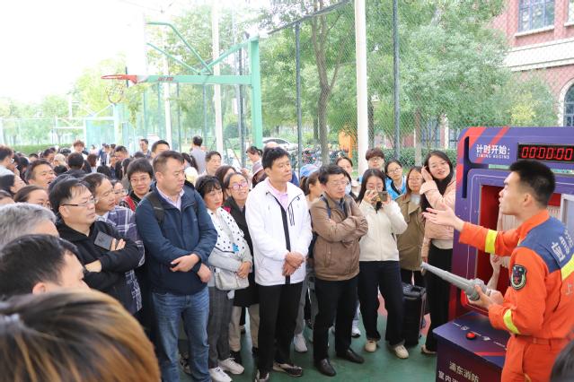 此次活动采取“消防理论宣讲+消防设施实操”的方式。结合校园消防安全常见问题隐患,活动现场分设灭火器使用、消火栓使用、油锅起火应急处置、心肺复苏以及火灾烟雾逃生体验屋五个点位,就火灾预防、初期火灾的处置、油锅起火处置、如何正确逃生等关键知识进行细致讲解,现场老师们积极提问,并与指导员进行互动交流,进一步巩固了消防安全知识。