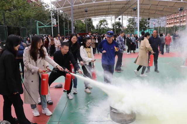 随后,在专业消防人员指导下,工作人员点燃模拟火灾现场设施,大家纷纷拿起灭火器,按照正确的操作步骤,迅速扑灭了初起火源。此外,活动现场还进行了火灾疏散逃生演练及心肺复苏实操演练,帮助参与师生掌握基础的消防器材使用方法以及紧急施救方法。