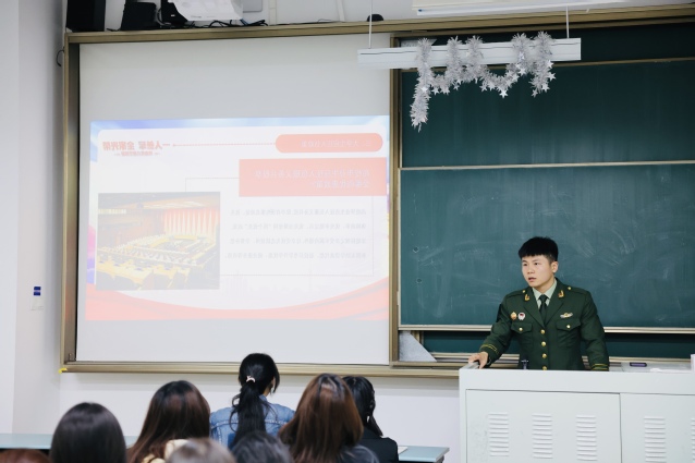 为深入贯彻习近平新时代中国特色社会主义思想,进一步激发商学院广大学生参军报国,履行国防义务的热情,商学院征兵工作站在11月10日组织优秀退役士兵利用晚自习时间进班开展国防教育暨2025年春季征兵宣讲会。本次宣讲活动由商学院退役学生梁正民、杨文骏、李东东,王耀兵以及宣讲团成员罗筑晶、颜宇昊和杨卫佳担任主讲,商学院全体大一新生参加了活动。