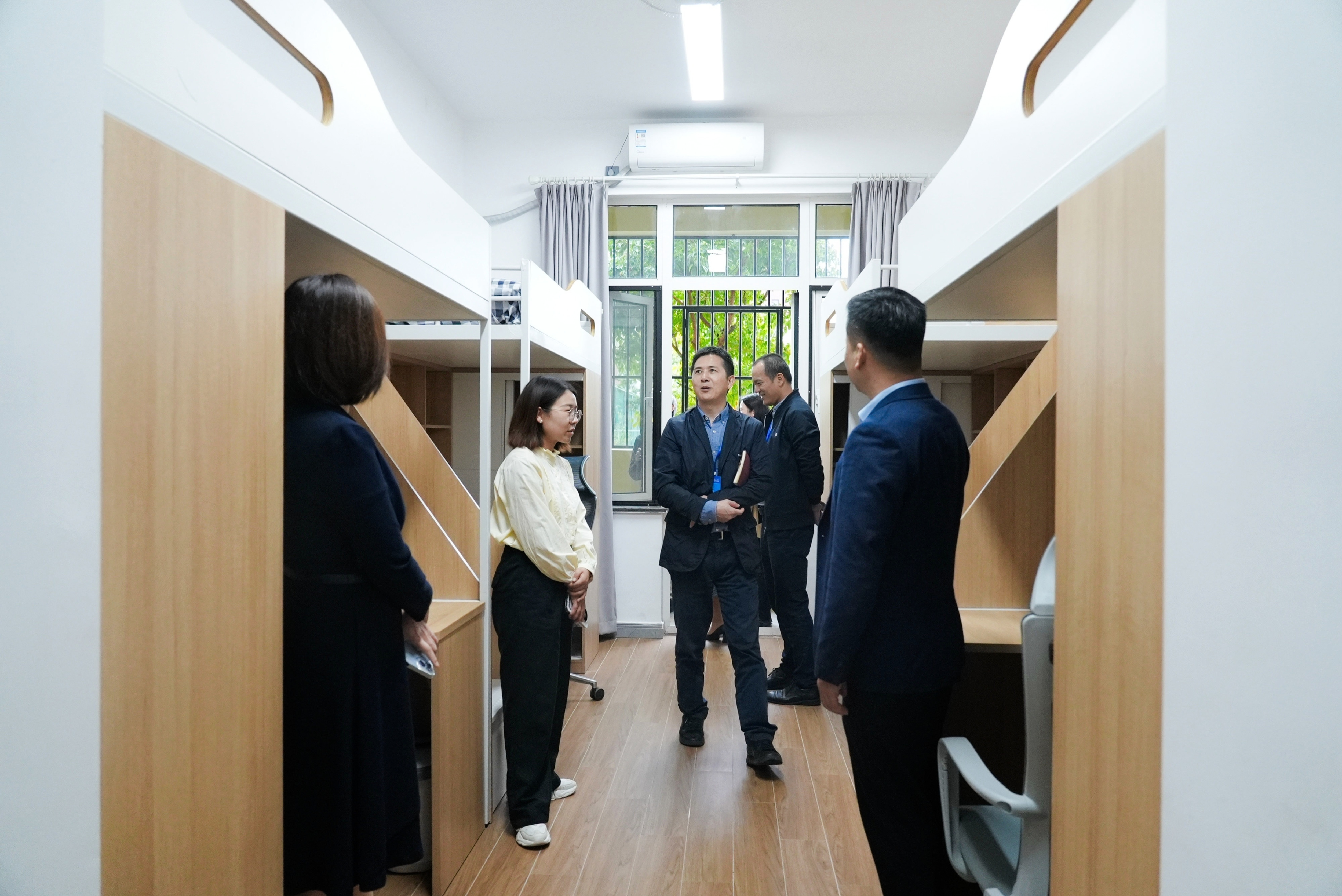 汇报结束后,专家组一行对学校本年度申报“六T”实务现场管理达标公寓的二幢楼宇(北七、北八)开展了实地走访检查,并查阅了相关资料,对学生公寓的规章制度建设、设施设备、安全建设、环境卫生、人性服务、文化建设、操作规范、学生公寓楼宇文化特色开展情况进行详细了解。