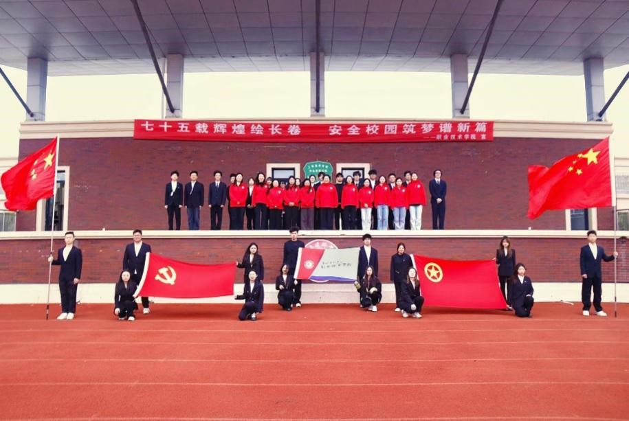 七十五载颂盛世,砥砺前行续华章。为加强职院学子的理想信念教育,引领广大青年树立崇高理想,职业技术学院于11月18日在操场举行“ 七十五载辉煌绘长卷,安全校园筑梦谱新篇 ”主题升旗仪式。参与本次活动的有职业技术学院党委副书记马冯莉,全体辅导员以及2023、2024级全体学生。