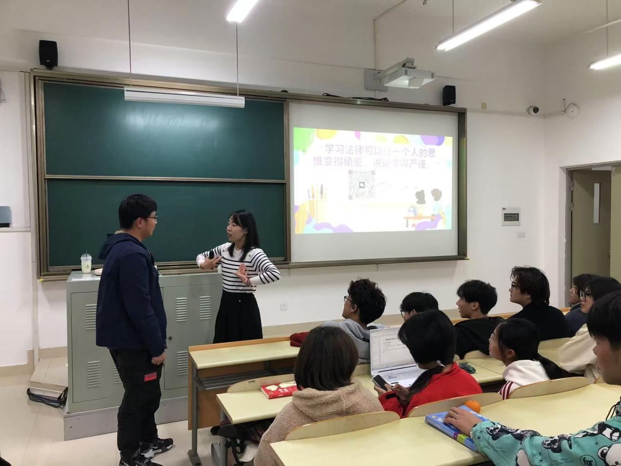 为进一步提升学生的法律基础和安全防护能力,切实筑牢学生知法、学法、懂法、守法、用法意识,提升校园安全防范能力,11月19日晚,外国语学院校友会邀请了2011届英语(翻译)专业优秀校友凌东媛,在二教阶梯教室408开展“法韵校园·未来可期”普法与职业发展分享会。此次讲座吸引了众多外国语学院同学参加,现场座无虚席。本次讲座由学院校友会秘书长朱心怡老师主持。