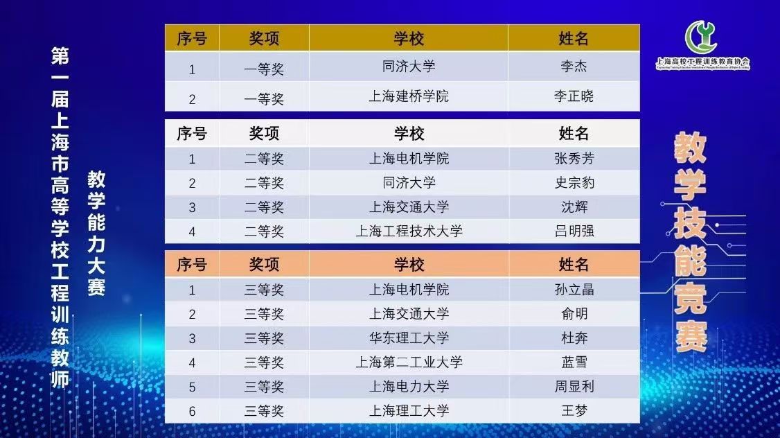 第一届上海市高等学校工程训练教师教学能力大赛于2024年11月22日在上海电机学院举行。大赛共设置教学技能竞赛和教学创新竞赛2个方向。大赛吸引了上海交通大学、同济大学、上海建桥学院、上海杉达学院和上海电机学院等10所高校的22支队伍,32位老师参加。