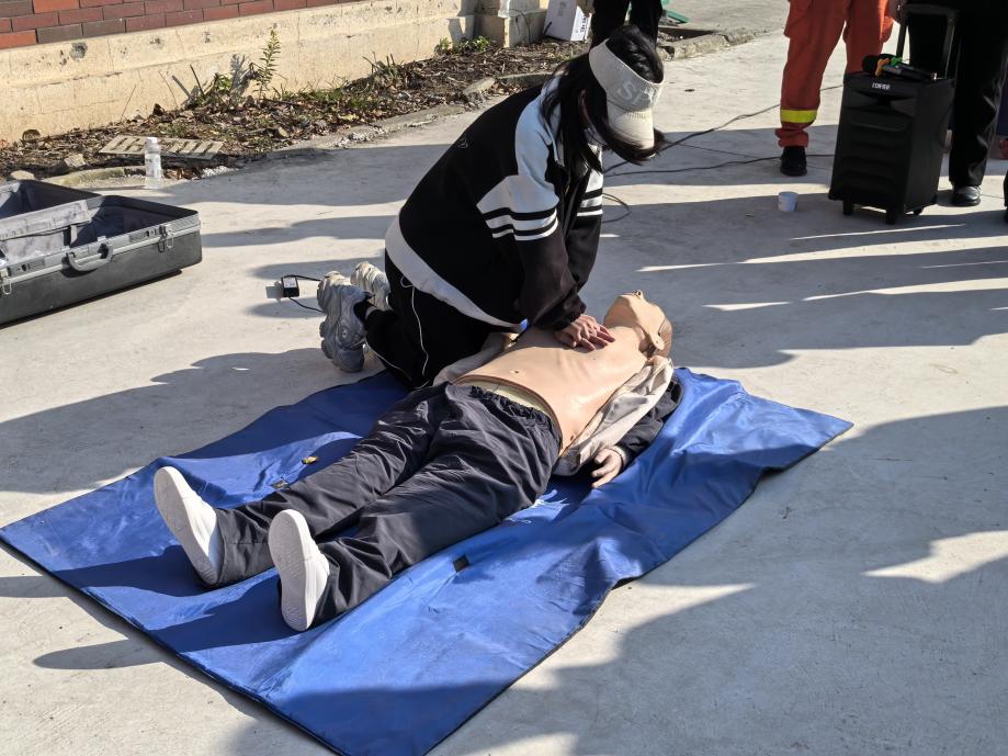随后,由后勤保卫处夏思老师进行心肺复苏演示。她详细介绍了心肺复苏的基本步骤和注意事项,并现场指导师生员工进行操作。通过演示和实际操作,大家掌握了心肺复苏的基本技能,提高了对急救重要性的认识。