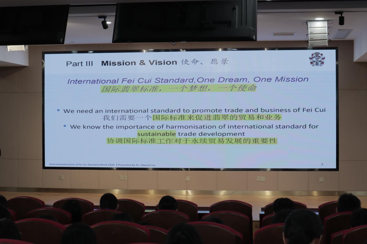学生们对此次讲座反响热烈,他们表示,通过廖博士的精彩演讲,对翡翠标准国际化的现状和未来发展趋势有了更深刻的认识,这不仅增强了他们对翡翠行业的兴趣,也更加坚定了他们投身于这一领域、共同开创美好未来的信心和决心。