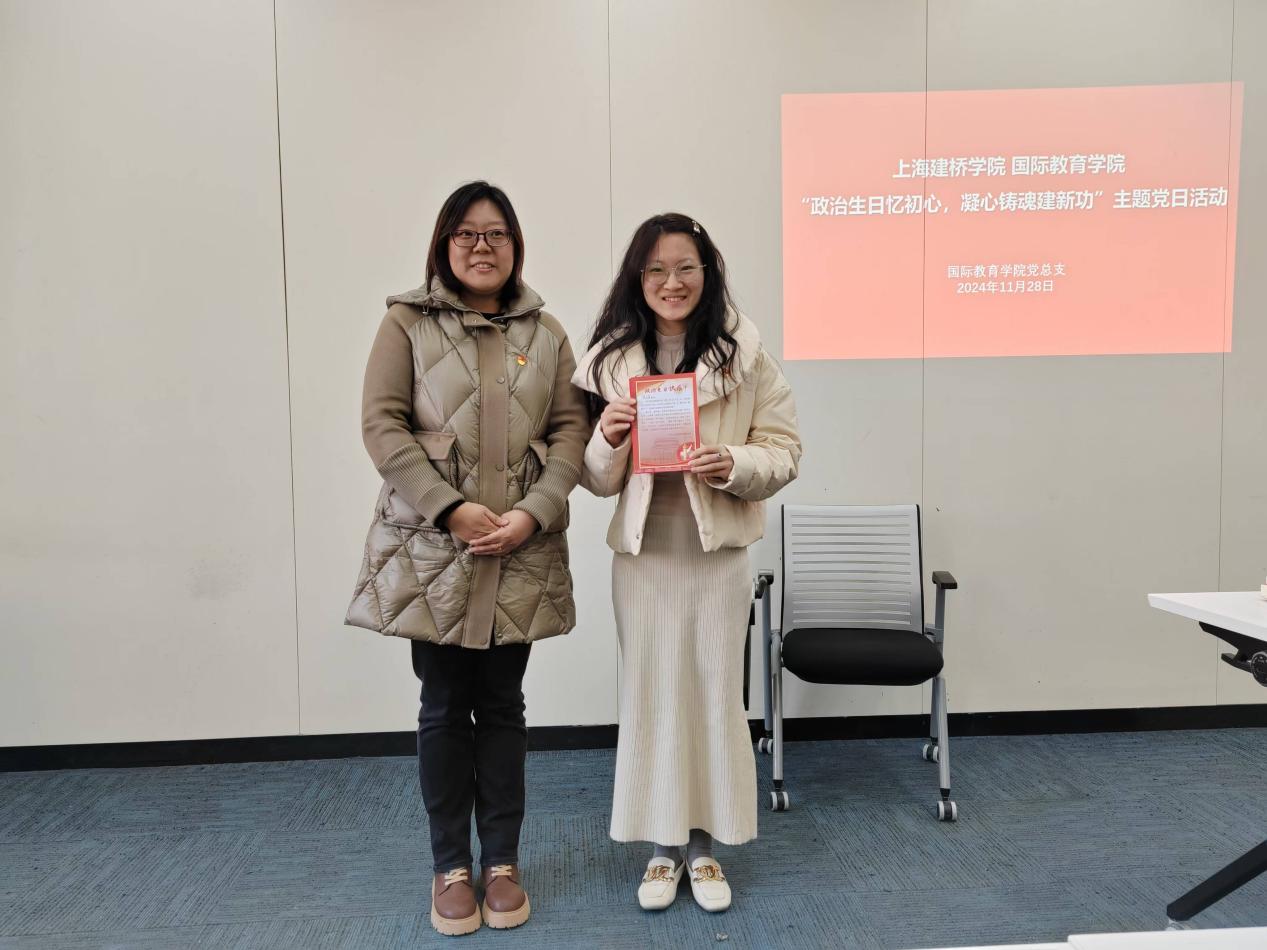 教工党支部书记杨晓兴和学生党支部书记杨静分别为党员同志送上“政治生日”贺卡,并送上祝福和嘱咐:“新时代、新征程,要时刻牢记自己是一名共产党员,认真学习贯彻习近平新时代中国特色社会主义思想,永葆共产党员的先进本色,为建设教育强国、全面推进中华民族伟大复兴而努力奋斗!”小而精美的生日贺卡,让党员留下一份深刻的“政治生日”印记,充分感受到来自党组织的温暖与关怀。