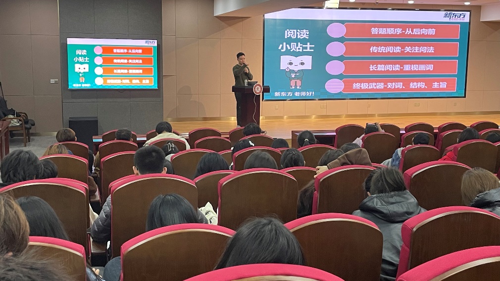 11月24日晚上,上海建桥学院百家讲坛迎来了一场备受期待的英语讲座。由新东方上海中心四六级项目教学负责人王鑫老师主讲的“四六级英语命题逻辑与备考方法解读”讲座在珠宝学院四楼报告厅圆满举行。