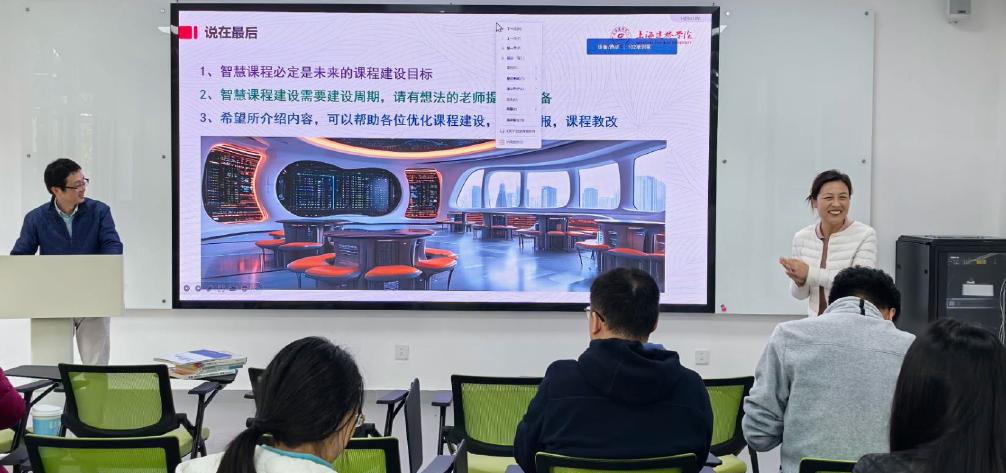 讲座尾声,教务处副处长朱霞进行了总结,她希望参会老师积极尝试进行教学改革、智慧课程建设、项目申报,从而优化我校的课程建设水平。