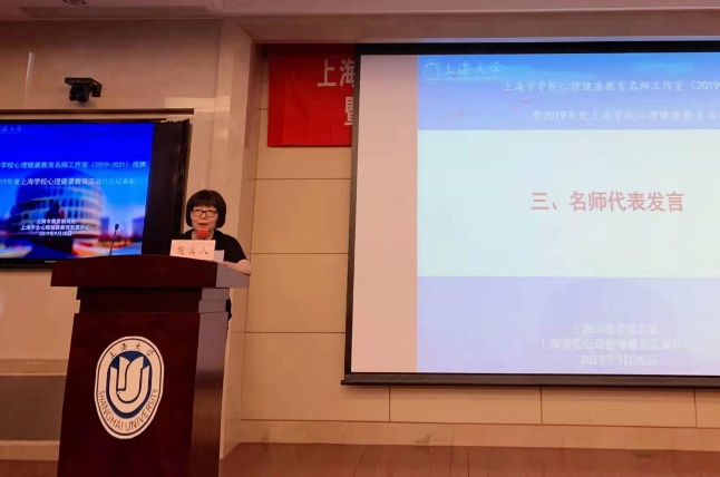 2019年9月25日,在上海大学乐乎新楼学海厅召开了“上海市学校心理健康教育名师工作室(2019-2021)授牌暨2019年度上海学校心理健康教育活动月总结表彰”大会。上海市教委德育处江伟鸣调研员代表德育处领导出席会议并讲话,会议由上海市学生心理健康教育中心主任李正云主持。