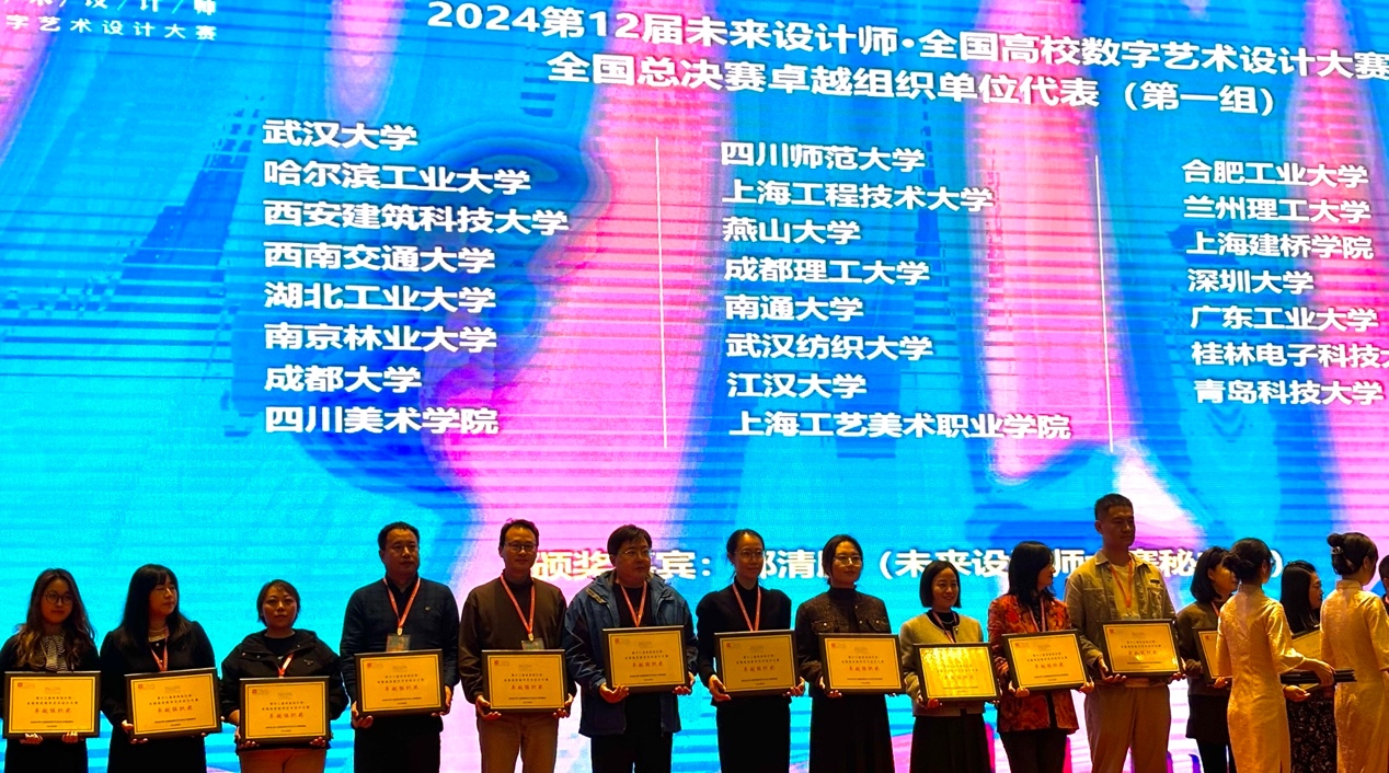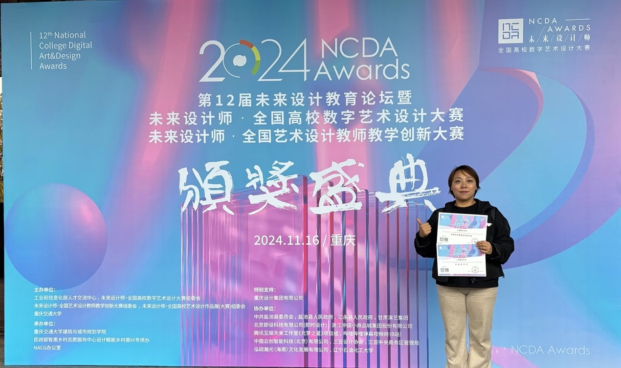 近日,2024第12届未来设计师·全国高校数字艺术设计大赛(NCDA)颁奖典礼在重庆举行。艺术设计学院副院长汤美娜副教授参加颁奖典礼,艺术设计学院在本届竞赛中荣获创新创业赛道优秀组织奖和卓越组织奖。未来设计师·全国高校数字艺术设计大赛由工业和信息化部人才交流中心主办,是教育部中国高等教育学会全国普通高校学科竞赛排行榜的重要赛事之一,旨在推动高校教育教学改革和创新人才培养。大赛共吸引了全国1891所高校参赛,征集作品数量高达298763件。