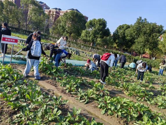 劳动教育课程是我校的特色课程之一。珠宝学院2024级新生从一入校就对劳动教育课程充满着期待。本学期劳动教育课一开始,在备课环节,老师们一致商定要走生态路线,把劳动教育与生态文明教育相结合,种植有机萝卜。通过三个多月的师生共同努力,在11月21日,我校劳动教育实践基地珠宝学院区域终于迎来了有机萝卜大丰收。
