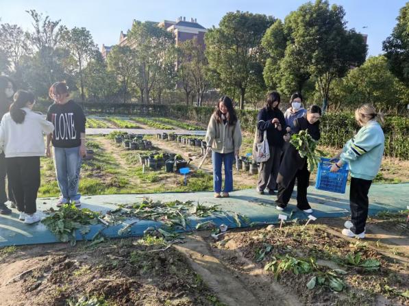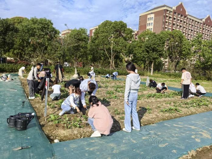 老师们选取了基地未经禁用物质处理的常规萝卜苗。唐婷玉、吴文雯、董蕊、谢娟燕等理论课老师以及实践课老师温水俊带领八个班的新生开展萝卜苗移栽工作。同学们小心翼翼地整地、定位、移栽、浇水。在后续的田间管理中,同学们坚持人工除草,不使用化肥,施有机肥、绿肥等来补充营养。