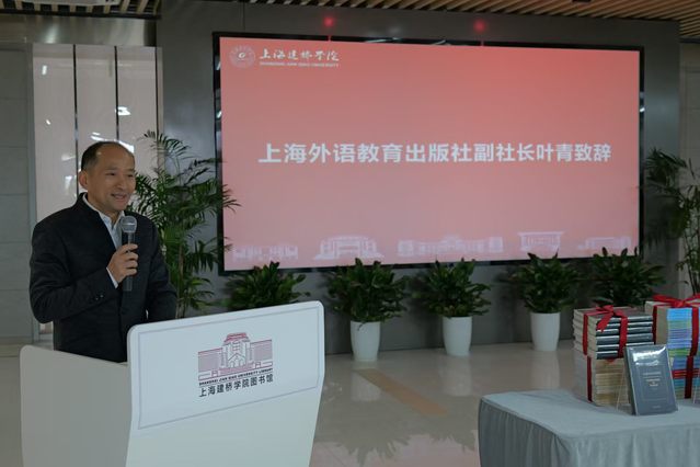 上海外语教育出版社副社长叶青在致辞中对我校的办学理念与成果给予高度认可。他表示,此次捐赠选择我校作为捐赠单位,希望我校能为更多的学生服务和让更多的学生收益。他勉励同学们多读书,既要精读专业书籍夯实专业基础,也要涉猎人文社科类书籍,提升综合素养与人文情怀。
