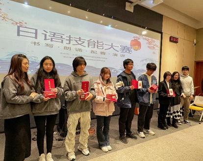本次比赛分为书写、朗读、配音和演说四个部分,全面考察了同学们的日语综合能力。在书写环节,参赛者们以工整的字迹、准确的语法和丰富的词汇赢得了评委们的赞赏;朗读环节则要求同学们准确发音、流利朗读,展现了自己的语音语调魅力;配音环节更是精彩纷呈,同学们通过生动的表演和准确的配音,将日语对话演绎得淋漓尽致;演说环节则是同学们展示自己思辨能力和口语表达的最佳舞台,他们围绕不同主题展开演讲,表达了自己的观点和见解。
