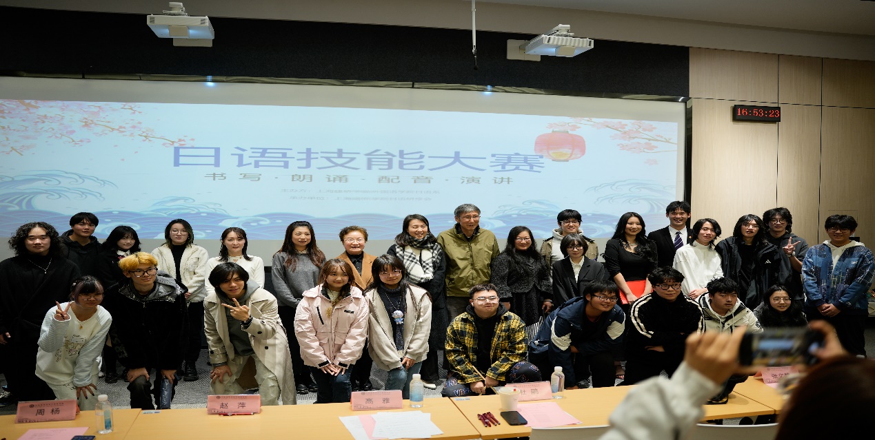 11月28日,上海建桥学院日语技能大赛在三教220举办。此次比赛由外国语学院日语系主办,日语研修社承办。上海建桥学院学生处副处长、校团委书记高雅、外国语学院党委书记杜鹃作为嘉宾莅临此次大赛;日语系主任赵萍、副主任周杨、教授孙逊、副教授张文碧、外籍教师榎園珠美、日语系范骏老师作为评委对此次大赛的参赛选手进行打分。本次大赛旨在提高学生的日语应用能力和综合素质,吸引了众多热爱日语的学生积极参与。