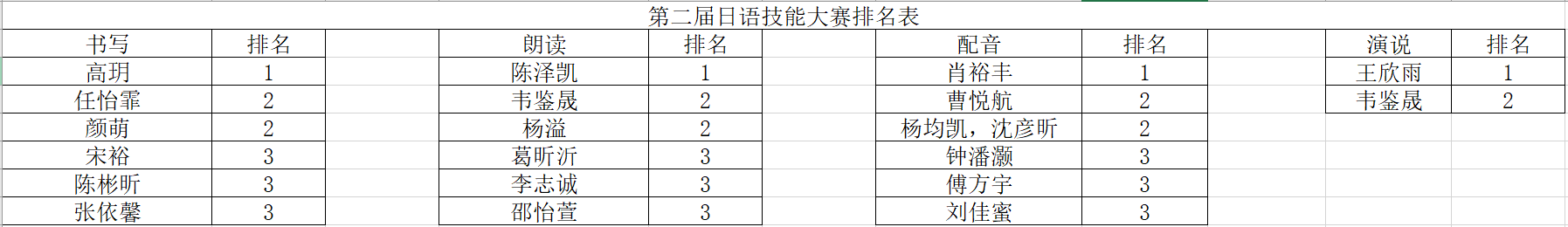 经过激烈的角逐和评委们的认真评选,日语系副主任周杨宣读了获奖名单,大赛最终评选出了一等奖4名,二等奖7名,三等奖9名(获奖名单详见下表)。