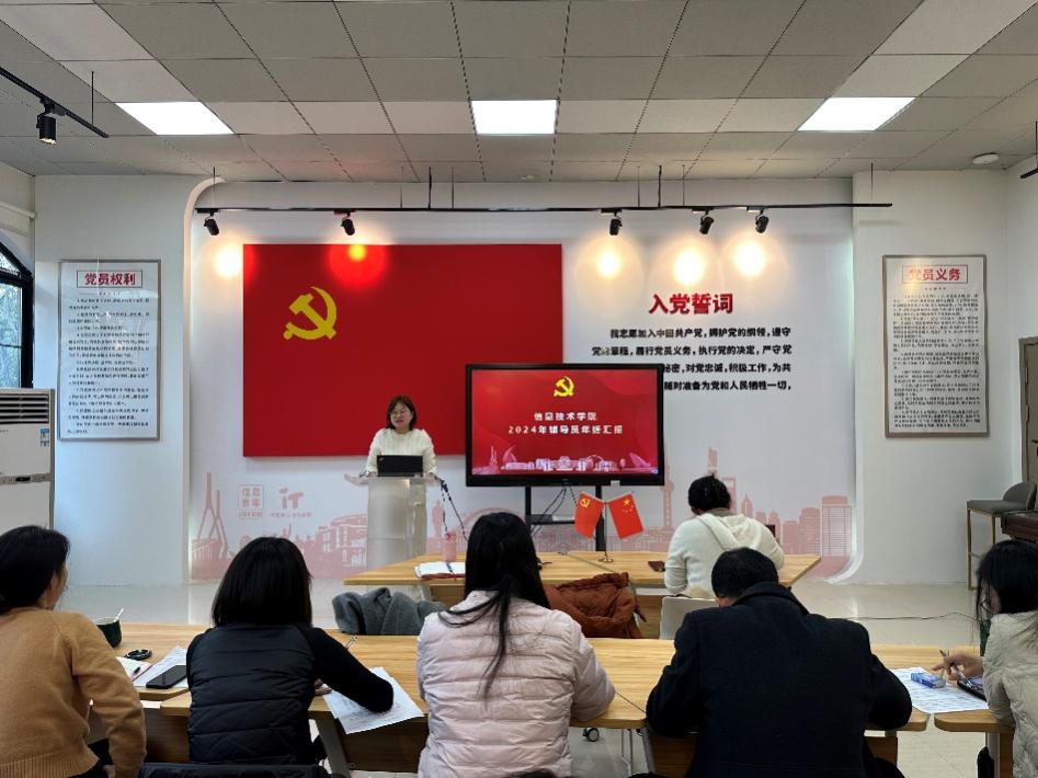 辅导员汇报结束后,信息技术学院党委副书记徐娜对述职汇报会进行了总结。她对学院本学期的整体学生工作进行了全面回顾,对部分辅导员富有创意的汇报进行了点评,肯定了学院学生工作在思想政治教育、学风建设、队伍建设、就业工作及校园文化活动等方面取得的进步与成绩,对全体辅导员们的辛勤工作表示认可。她指出,本次述职汇报大会充分展示了辅导员们扎实的工作作风、丰富的工作经验和积极向上的精神风貌,体现了辅导员们对学生工作的热情和责任感。她勉励全体辅导员在总结反思工作的同时,要更加注重个人的成长、思考自身的职业发展,希望大家在寒假期间多思考、多谋划,为下学期的工作做好充分准备。