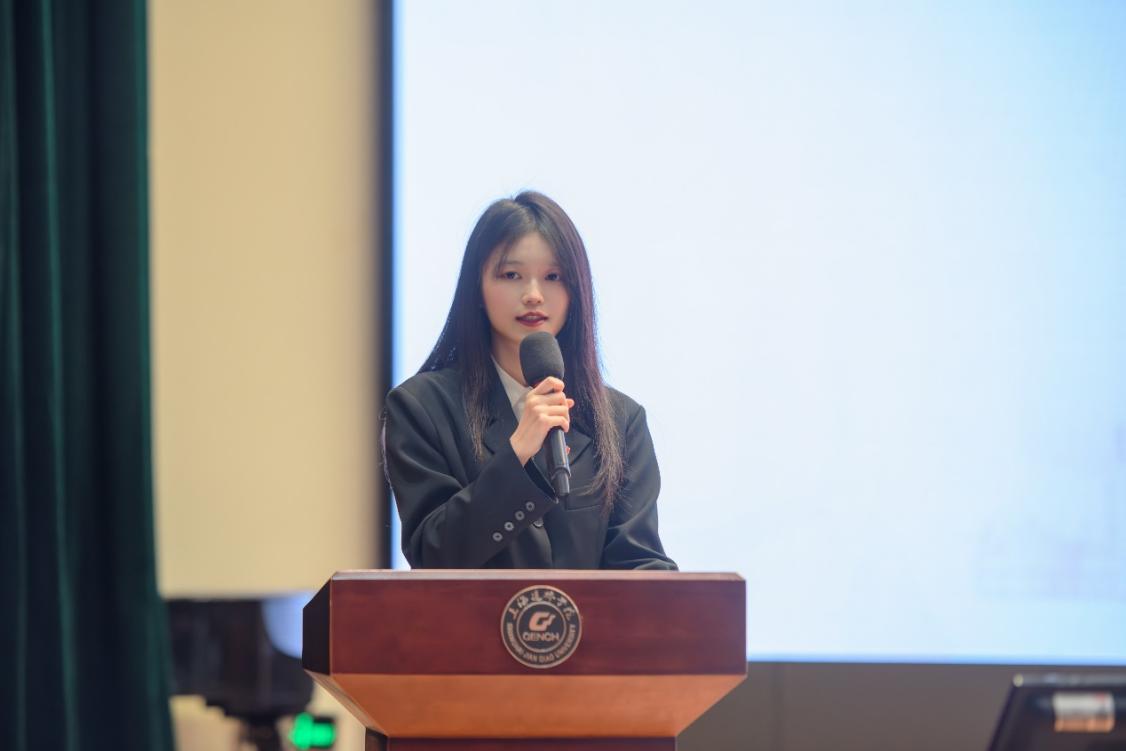 活动中,网络工程B22-5班徐也一从大学生活、专业学习、科研竞赛等方面,以自己的亲身经历,向新生详细介绍她在大学里的所学所获、所思所想、所感所悟,从学习方法、能力培养到职业规划,为同学们做了全面且具深度的指导,彰显了其作为榜样的示范力量与引领价值。她呼吁同学们积极探索,不断完善并成就自我:“去寻找,去尝试,去感受,去试错,成为更好、更完整的自己。”