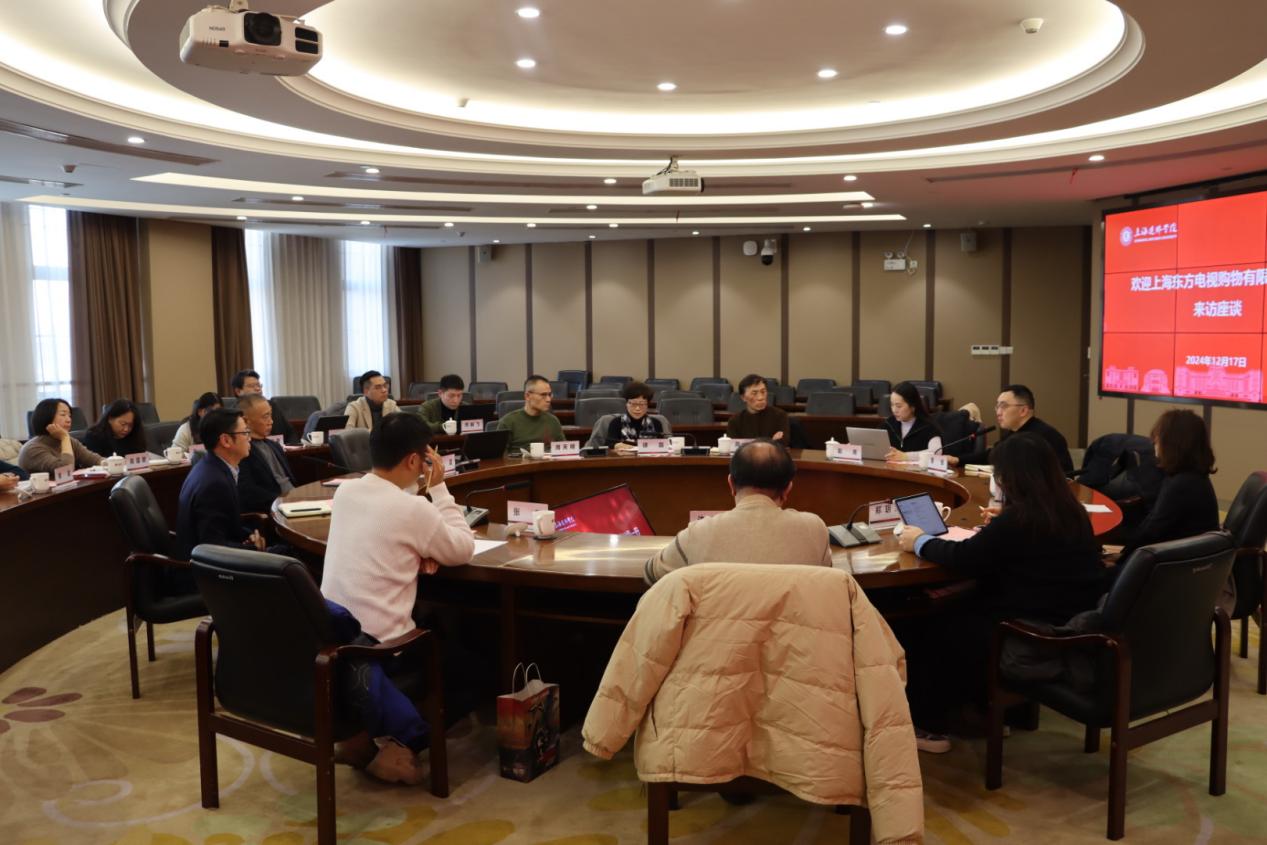 李卉蓉总裁在听取了双方的介绍后,对学校以终为始、逆向设计的产教融合思路给予高度肯定,认为校企之间可以互为需求、互相供给,实现双向奔赴。她补充介绍了公司直播基地建设、直播业务从传统电视大屏向移动端小屏的转型历程、紧贴市场动态的创新发展模式。同时,她也热情邀请学校师生尽快前往东方电视购物公司参观交流,进一步洽商产教融合的具体落地方案。