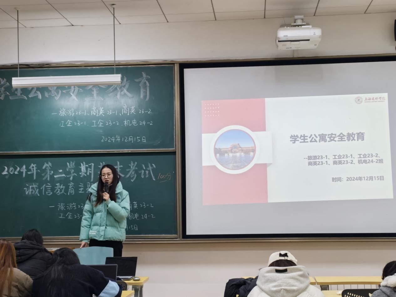 为确保学生住宿环境的安全,培养学生的安全责任感,预防安全事故的发生,保障学生健康成长,并营造一个秩序井然、文明和谐的宿舍文化氛围,职业技术学院于2024年12月15日组织2023级全体同学举行了一场以宿舍安全教育为主题的班会。