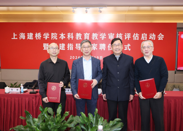 12月19日,上海建桥学院本科教育教学审核评估启动会暨评建指导专家聘任仪式在行政中心M617会议室举行。上海市教委督导室领导、市教育评估院领导以及舒慧生、辛明军、龙江三位审核评估评建指导专家出席会议。全体校领导、各职能处室正职、二级学院院长、教学副院长、副书记共同参会。副校长陈峥主持会议。