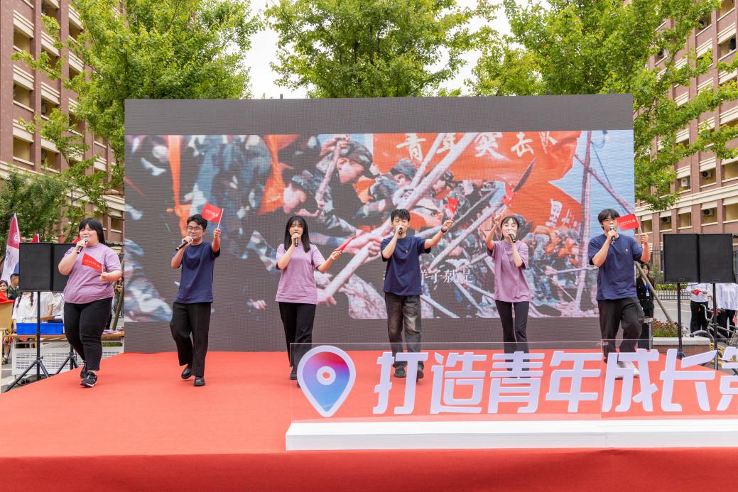伴随着热烈掌声,“打造青年成长第一站”协同育人系列活动正式启动。一段精心制作的介绍视频,生动展现了系列活动的亮点与愿景。音诗画节目《时空的对白》巧妙地将历史与现代相连,通过深情的朗诵、悠扬的音乐与生动的画面,带领现场师生穿越时空隧道,与历史上的先驱者进行了一场心灵的对话。紧接着,一场重温入团仪式的环节将活动推向高潮。快闪合唱《有我》以其激昂的旋律和励志的歌词,表达了当代青年“强国有我,请党放心”的坚定信念和勇于担当的时代风貌。活动现场还举行了“青春为中国式现代化挺膺担当”主题团日暨2023年度五四评优表彰活动,对学校2023年度“五四特色分团委” “五四优秀分团书记”“五四特色团支部”“五四特色团支部” “五四优秀团员”进行了表彰。