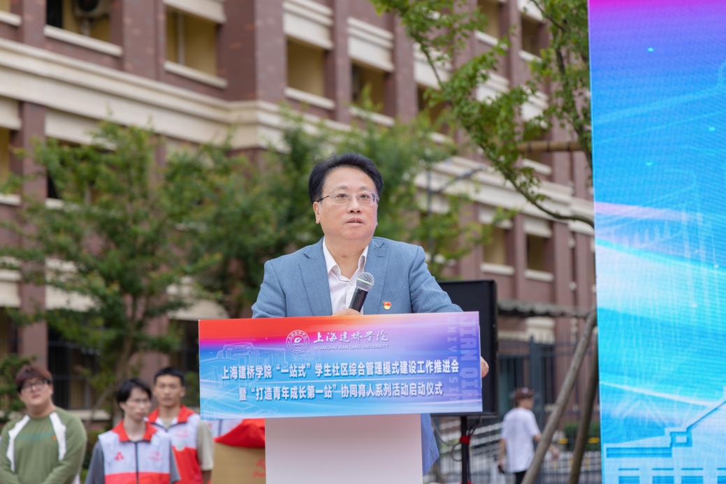 5月23日下午,上海建桥学院在学生社区广场举办了一场别开生面的活动——“一站式”学生社区综合管理模式建设工作推进会暨“打造青年成长第一站”协同育人系列活动启动仪式举行。上海市民办高校党工委专职干部周光狼,上海建桥学院校长朱瑞庭、校党委书记杨伟人、副校长陈伟出席,各职能部门负责人,各二级学院党委(总支)书记、副书记和师生代表参加活动。学生处处长张巍主持活动。