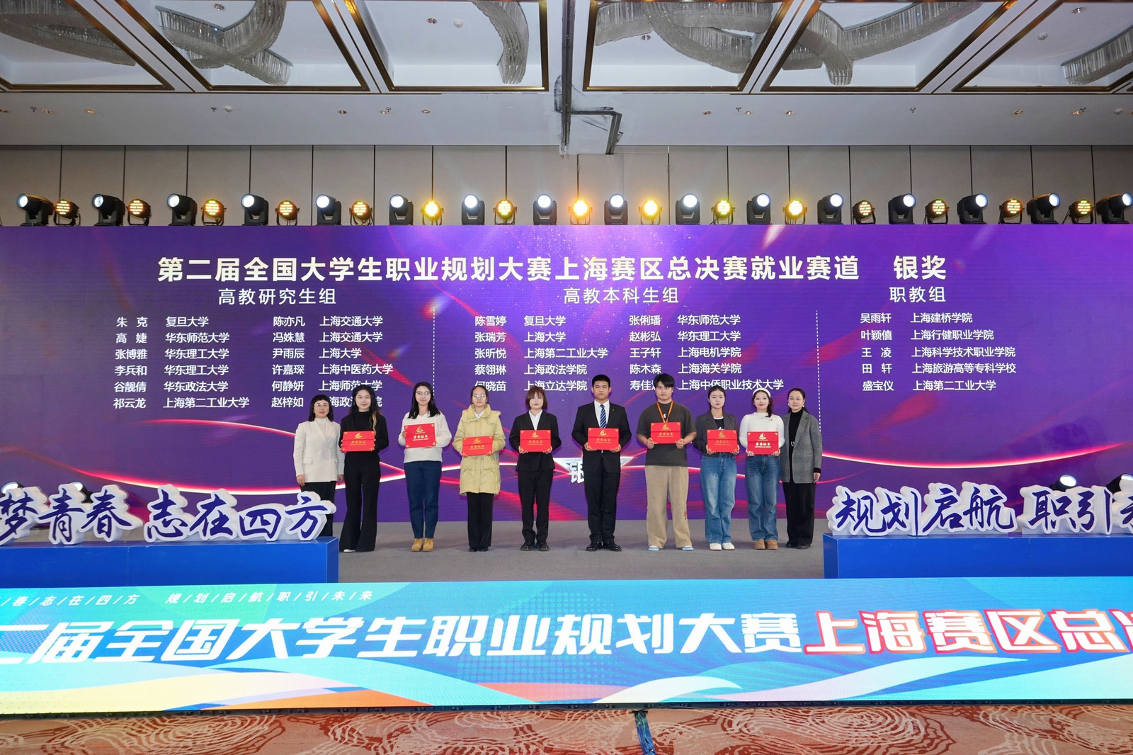 2025年1月4日,第二届全国大学生职业规划大赛上海赛区总决赛及颁奖典礼在上海佘山举行,我校信息技术学院苏雨蒙获得就业赛道金奖,职业技术学院吴雨轩获得就业赛道银奖,艺术设计学院董宇程、职业技术学院陈艳婷获得成长赛道银奖。本次比赛,我校荣获1金3银以及优秀组织奖、优秀指导教师奖。