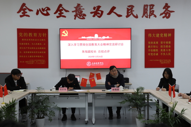 为深入学习贯彻全国教育大会精神,12月26日下午,商学院全体师生党员听取了教育部党组书记、部长怀进鹏的《深入学习贯彻全国教育大会精神,挺膺担当,为教育强国建设贡献力量》主题报告,并组织召开支部学习交流研讨会。上海建桥学院商学院会计学第二学生党支部学习交流研讨会在商学院党建服务中心举行,校长朱瑞庭参加了支部“深入学习贯彻全国教育大会精神”的专题研讨会,会议由支部书记张继安主持。
