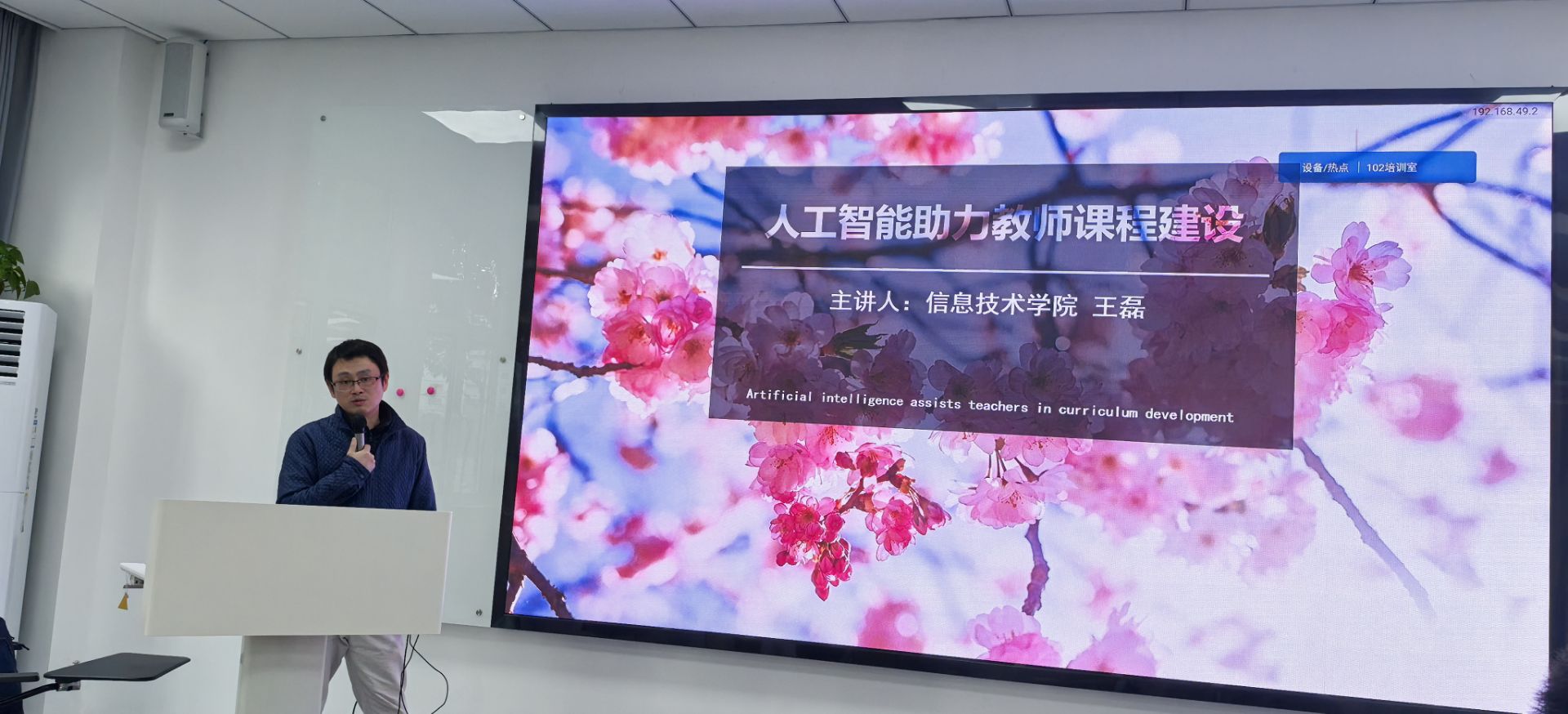 2024年12月24日下午,教发中心培训室开展了一次面向全校的关于人工智能如何助力教师课程建设的讲座,主讲人为信息技术学院王磊老师,参加此次讲座的老师包括机电学院,艺术设计学院,新闻传播学院,商学院,信息技术学院等全校,共计20余名教师。