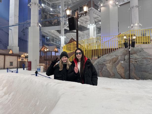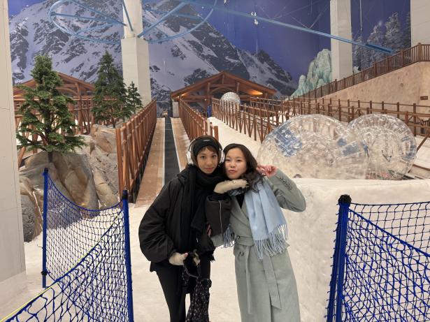 活动当日,来自不同国家和地区的师生们齐聚一堂,组队参与各项娱雪项目。踏入耀雪冰雪世界,宛如置身于梦幻般的雪乡,吸引着中外师生们纷纷投身其中。整个娱雪区精心雕琢,巧妙地融入了雪山、古堡等元素,每一项娱雪活动都蕴含着独特的冰雪魅力,来自德国的外籍教师不禁感叹娱雪世界里的雪山与阿尔卑斯山有着异曲同工之妙。