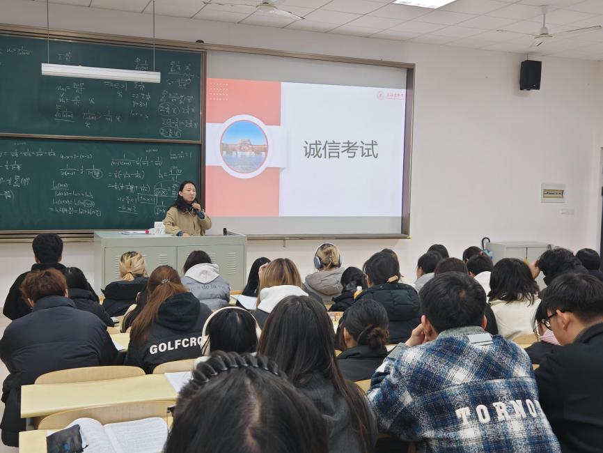 接着,各位辅导员老师通过分享考试违纪案例、领学《上海建桥学院学生手册》考场规定、违纪与作弊的界定内容,介绍学校关于考试作弊的相关处罚规定等举措,进一步强调了学校考试的权威性与严肃性,让同学们清楚地认识到了作弊行为的红线不可触碰,领悟到了作弊行为对个人学业与人格声誉的双重损害。此外,各位辅导员老师,根据不同专业学生的课程和考试安排,为同学们提供了一系列实用的备考建议,鼓励大家合理规划时间,疏解焦虑与紧张情绪,制定科学的复习计划。
