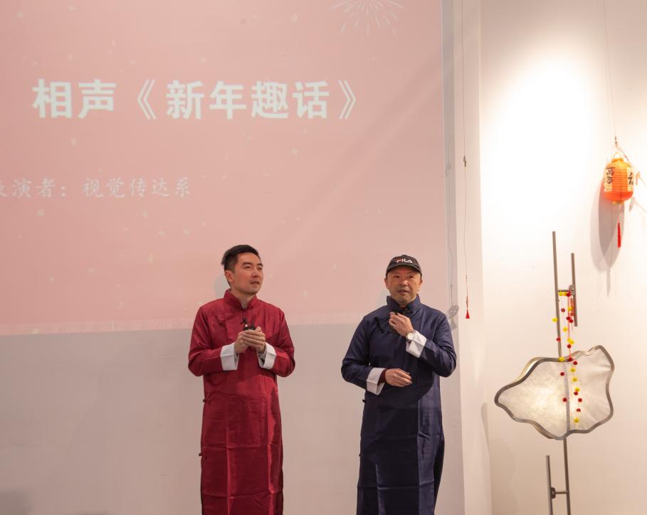 精彩节目轮番上演,周智明书记深情献唱《我和我的祖国》,用歌声为年会拉开温暖又动人的序幕,各系也纷纷亮出绝活,视觉传达系的相声、环境设计系的歌曲串烧、数字媒体艺术系的山东梆子、艺术与科技系的改编歌曲、辅导员团队的合唱歌曲、行政部门的歌曲演唱以及各系办代表的精彩舞蹈,不同风格的节目相互交织,仿佛编织成了一幅绚丽多彩的艺术画卷,为年会持续注入热烈欢快的氛围。