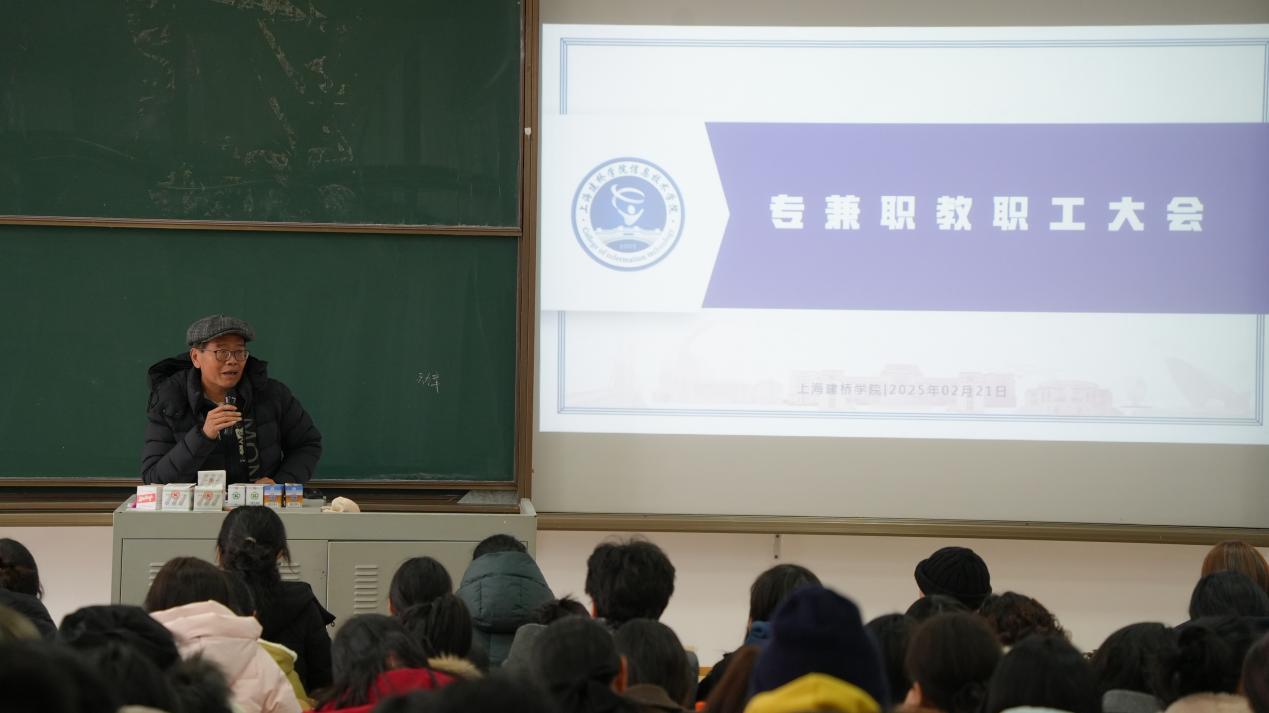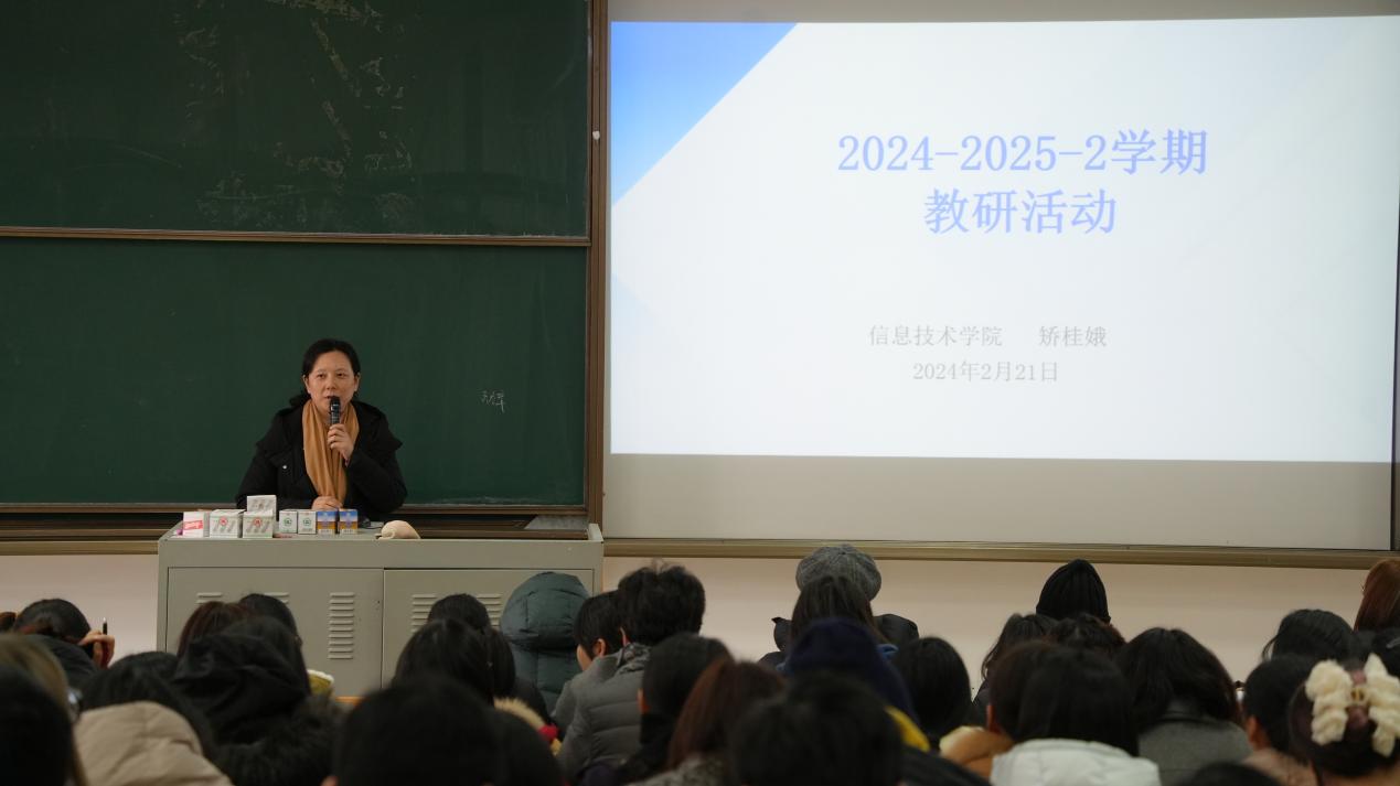 矫桂娥副院长对教学文档提交、教材领取、第一课堂准备、教学工作规范等开学准备工作;上学期课程归档材料提交、补考等2021-2025-1学期相关工作;毕业学年动员会、毕业论文、毕业实习及就业、毕业生人才培养完成情况等2025届毕业班相关工作;审核评估教学口方面的安排、时间节点及准备工作;2025年度内涵建设项目、教师教学竞赛、校级教学成果奖的申报、数字化专业建设等其他工作重点进行安排,并向与会教师分享2025年上海市教育大会的精神和内容。