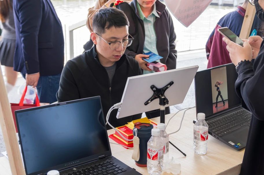 志愿者为杨书记讲解了融合AI技术的活动特色,此时恰逢东方卫视记者到场采访。面对镜头,杨书记表示:"新时代学雷锋既要传承'螺丝钉精神',也要善用人工智能等创新工具。通过科技志愿服务,我们正在探索思政教育与社会实践深度融合的新路径。"