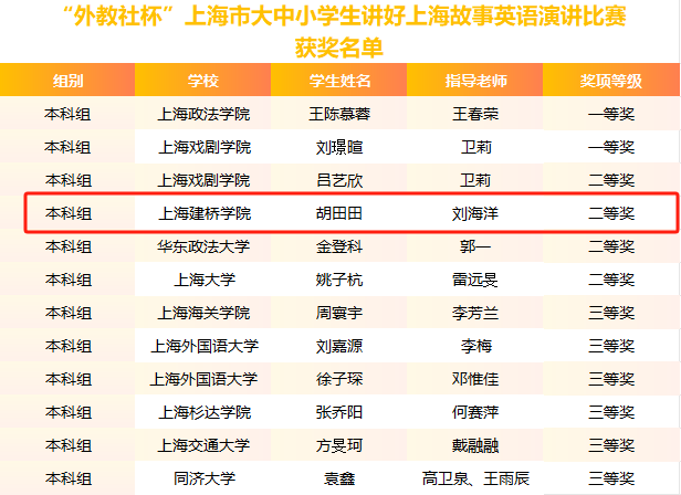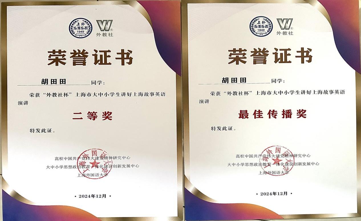 近日,“外教社杯”上海市大中小学生“讲好上海故事”英语演讲比赛颁奖典礼在上海外国语大学举行。本届赛事以机遇中国·魅力上海为主题,通过构建大中小学思政教育一体化实践平台,培育兼具文化定力与国际视野的新时代青年传播者。