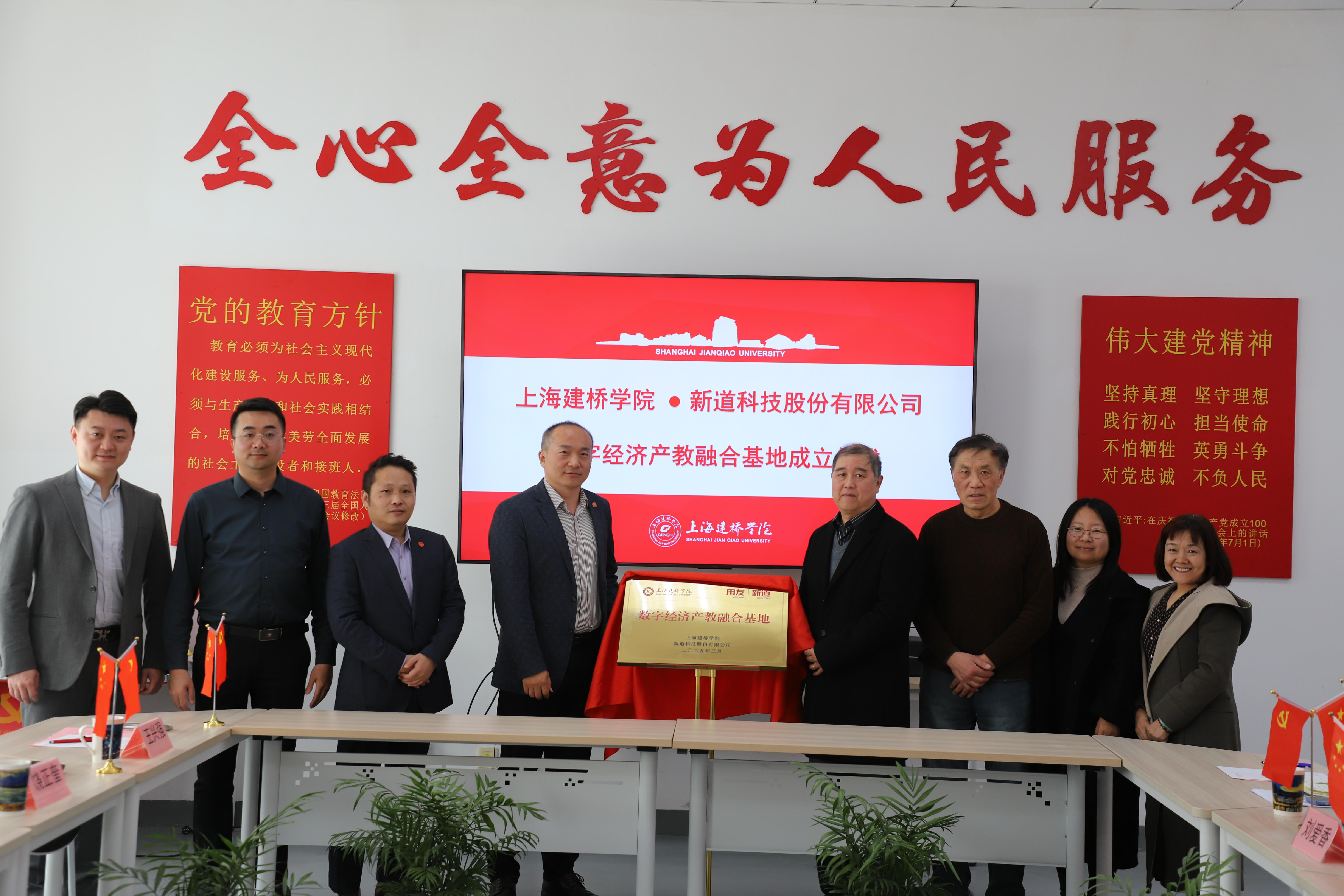 聚焦数字经济人才培养与产业创新,上海建桥学院与新道科技股份有限公司共建的“数字经济产教融合基地”于3月19日在商学院党建服务中心正式揭牌。上海建桥学院副校长赵雷洪、新道科技副总裁林斌以及商学院领导班子、数字经济系全体教师共同出席揭牌仪式。