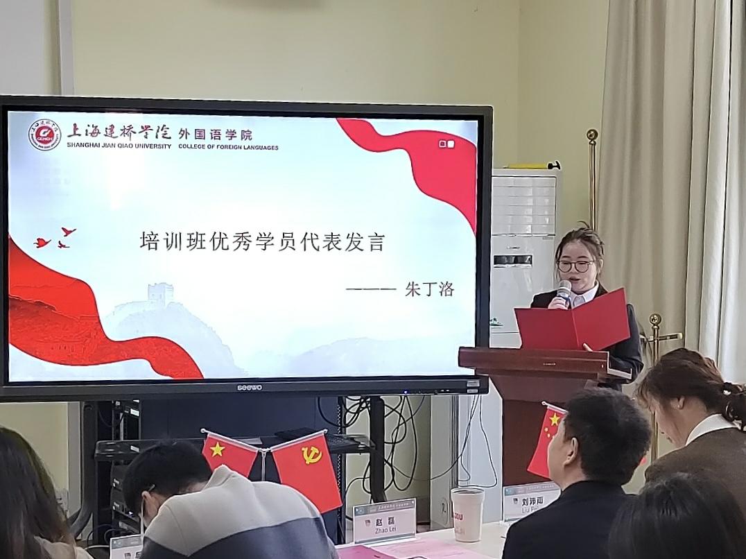 入党积极分子培训班优秀学员代表朱丁洛分享了自己的深刻感悟与收获,并分享相关学习建议。她分享到通过专题课程的学习,了解到了党员的权利与义务,感受到了党的伟大历程和光辉业绩。在实践活动中,通过机房打扫和诗朗诵彩排,培养了团队合作精神和责任感。同时,她呼吁学员们要重视党章学习,合理安排专业学习与党课培训时间,并发挥自身先锋模范作用,帮助同学解决问题。时刻以党员标准严格要求自己,做到内化于心、外化于行,以最实际的行动来迎接此次入党积极分子培训班的考验。