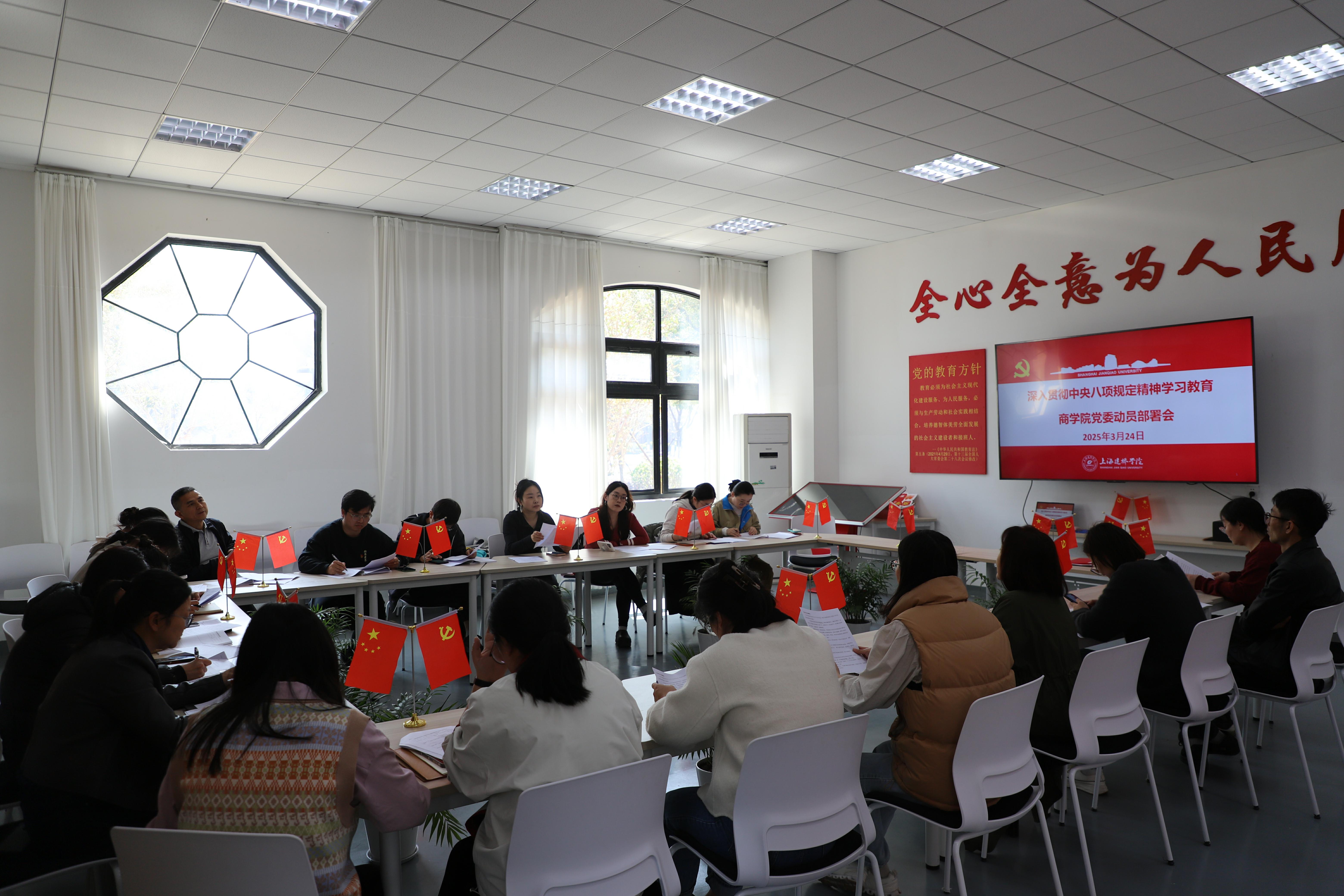3月24日,商学院党委在学院党建服务中心组织召开深入贯彻中央八项规定精神学习教育动员部署会,商学院党委班子成员、各基层党支部书记出席动员会。会议由学院党委书记刘爱香主持。