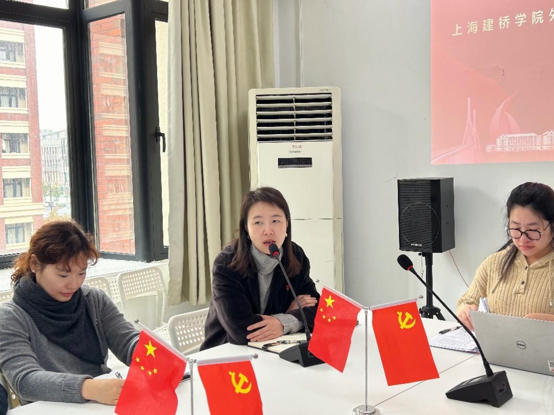 随后,学院党委书记杜鹃作讲话。杜书记在讲话中,首先肯定了第二学生党支部过去三年间取得的成绩,并列举了支部优秀学生党员及支委成员在思想引领、志愿服务、学术竞赛等方面的突出贡献,肯定了他们用实际行动践行"为人民服务"宗旨的先锋模范作用。继而,杜书记对支部全体师生党员提出殷切期望。她特别强调,外语专业党员应充分发挥专业优势,搭建理论实践双螺旋上升通道:既要深耕语言技能,锤炼用外语传播中国声音的能力;更要善用AI技术赋能,创新国际传播叙事方式,努力成为连接世界与中国的“超级翻译官”。最后,杜书记指出,每位党员都是引领前行的鲜艳旗帜,她鼓励师生党员共同探索“理论+实践”的螺旋式成长路径,共同赋能,以“传帮带”模式构建成长共同体,带动更多人共同进步。