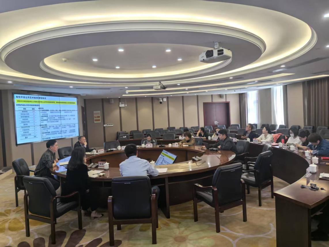 会议首先回顾了高校艺术教育的重要政策背景,强调学校自2002年起始终坚持艺术课程与校园文化建设双轮驱动,积极落实教育部《学校艺术教育工作规定》,并结合《2023年教育强国建设规划纲要》的新要求,不断完善公共艺术课程体系。目前,学校已开设多个方向的公共艺术教育课程,力求帮助学生拓展审美视野,提升人文素养。在公共艺术课程与实践创新方面,学校提出将进一步加强课程体系建设,完善网络课程资源,探索AI辅助教学与非遗文化融入课堂的路径,强化学生的艺术创造力、文化自信和综合实践能力。同时,强调艺术教育应与心理健康、语言文字教育联动,形成跨学科协同育人的完整机制。