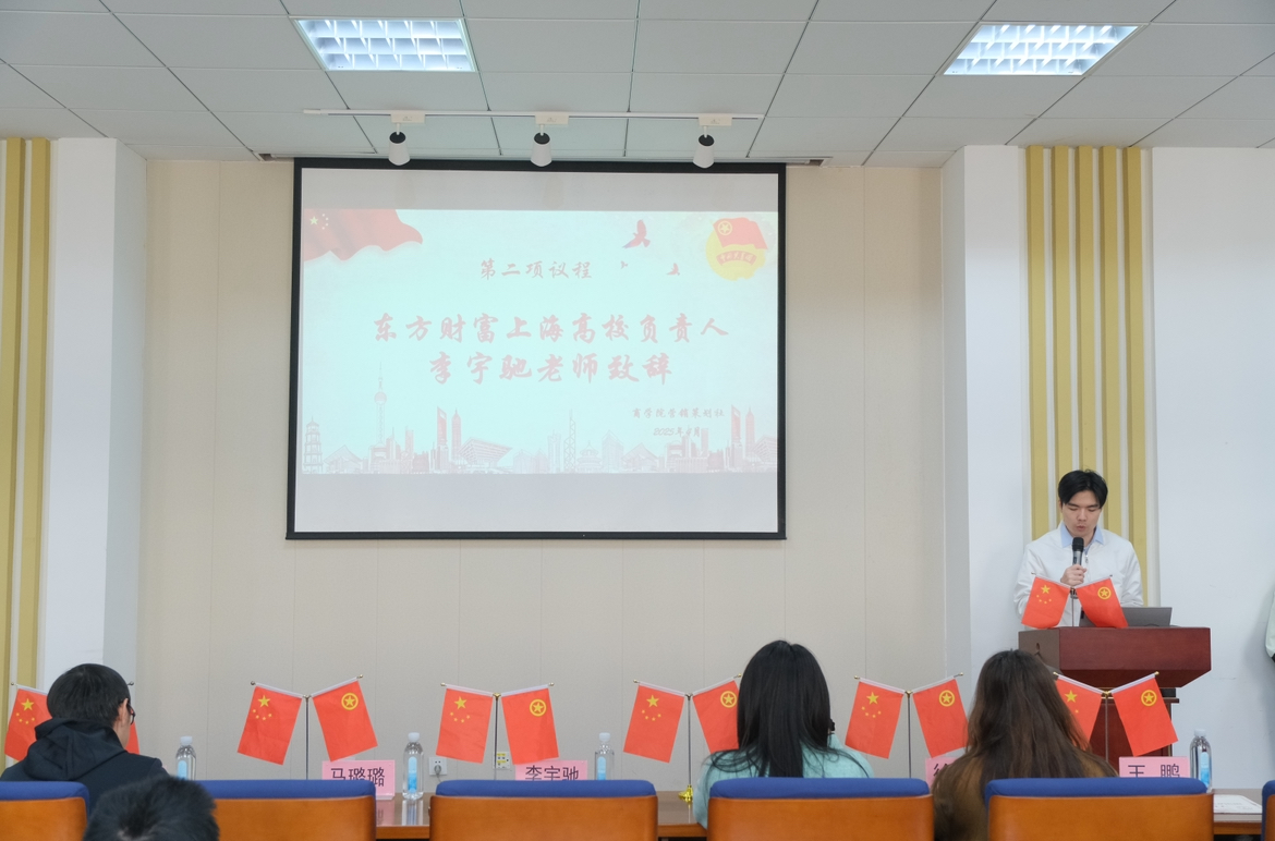 李宇驰老师在致辞中强调:“金融安全是数字经济的基石,青年学子需以科技为翼,筑牢风险防线。” 并对营销策划社同学在2024届"东方财富杯"金融安全知识比赛中取得的优异成绩给予高度的认可与肯定。